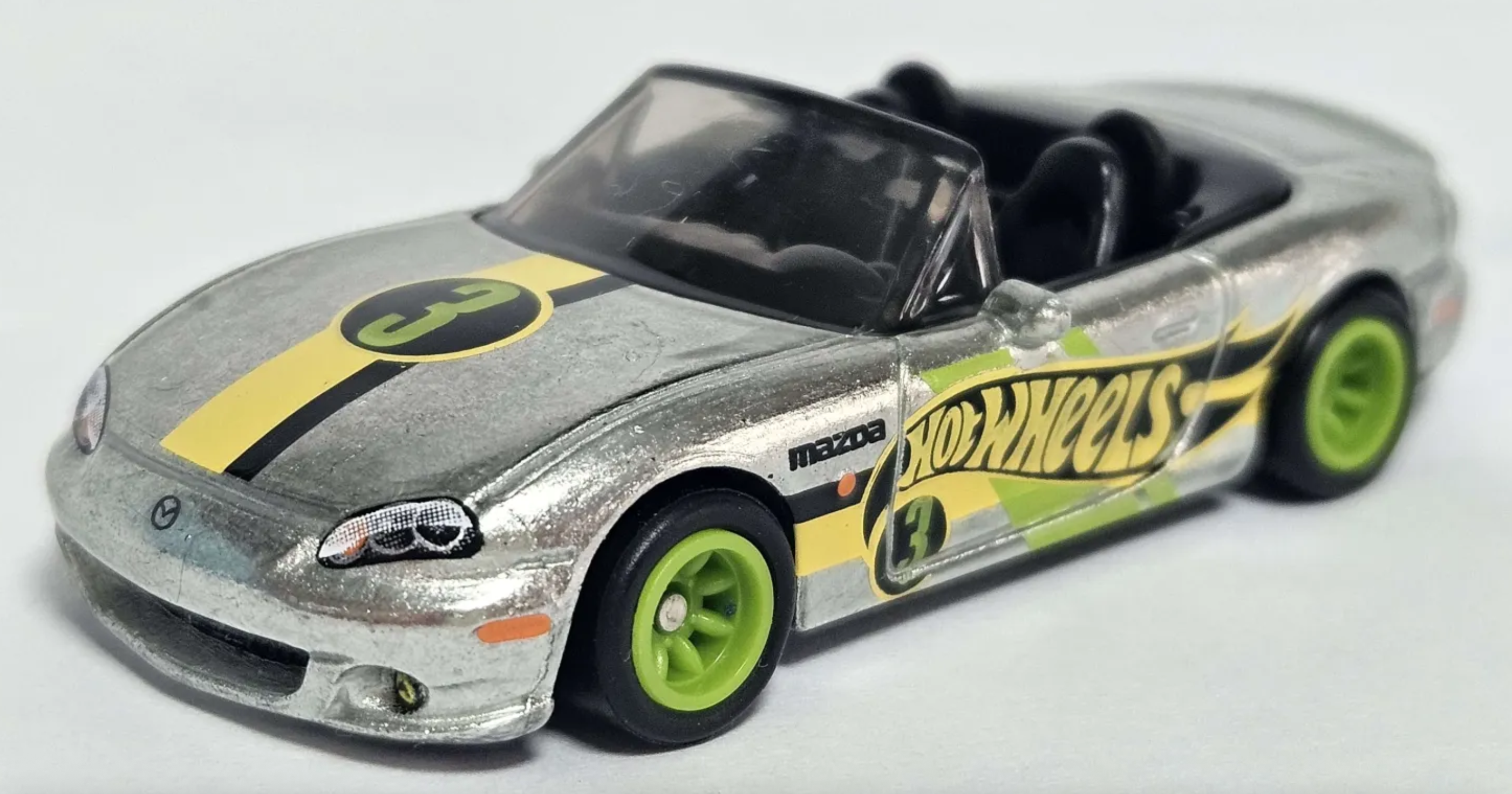 | 2025 | Collector Edition | ZAMAC | Mazda logo on front & rear; "MAZDA" with logo on rear license plate; detailed headlights, taillights, & side markers, "HOT WHEELS" doors, yellow-black striping and "3" logo on hood and doors | Black / Metal |