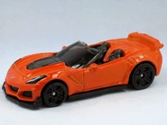 The Corvette ZR1 was introduced in 2019 as the ultimate high performance Corvette, with a special aero package and a large spoiler to hold down the 755 hp LT5 under the hood. The Hot Wheels version is based on the convertible.