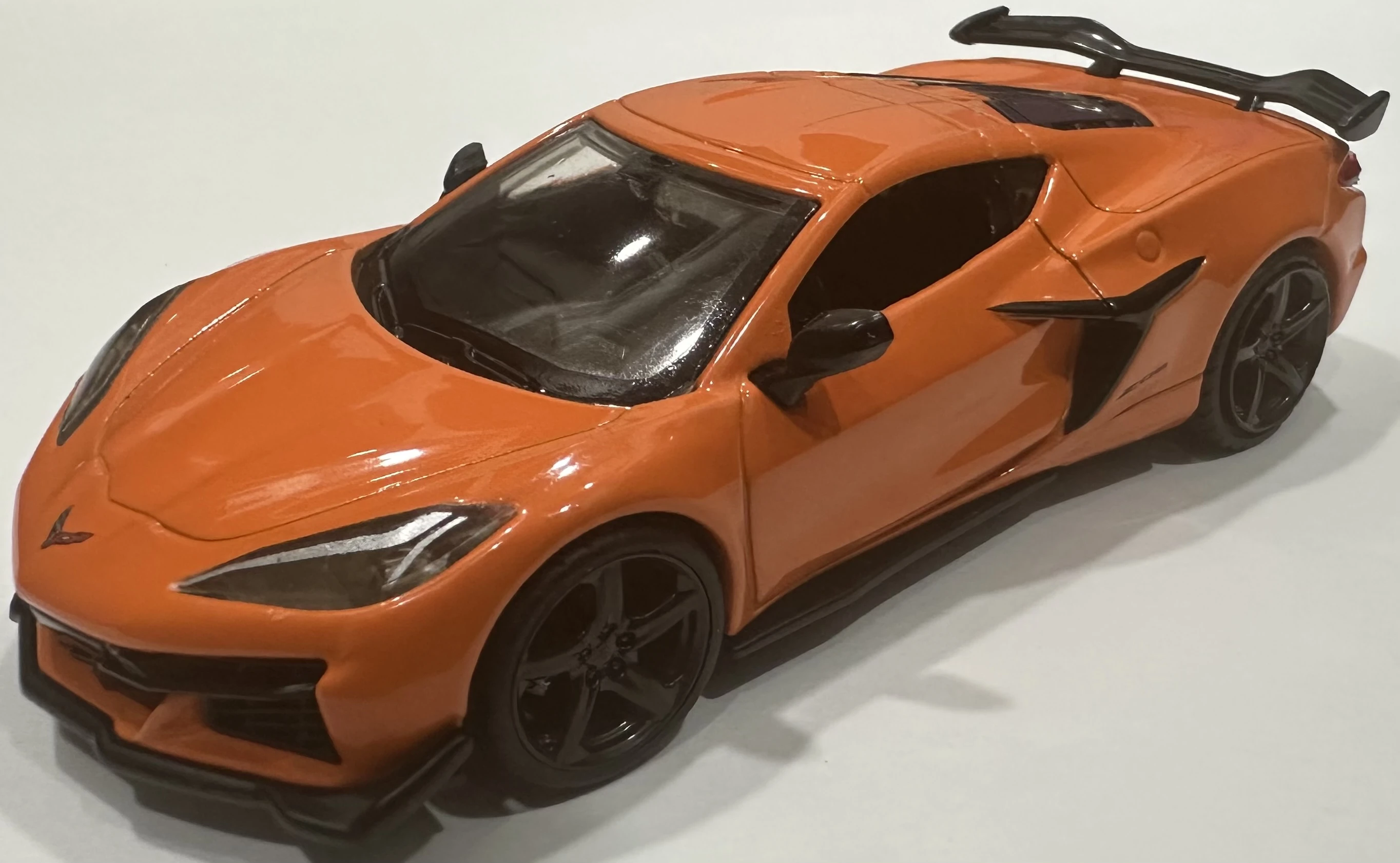 Amplify Orange Metallic | "Z06" on sides, small Corvette logo in front of hood, "AMPED" on rear black Hot Wheels license plate, detailed headlights, taillights, & trim | Black / Metal |