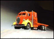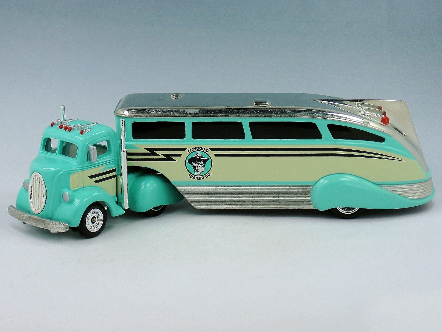 The '38 Ford C.O.E Truck is based on the real production Cab Over Engine truck. It has come out in several body styles including a flatbed trailer, flatbed trailer with airstream accents, box trailer and airstream trailer.