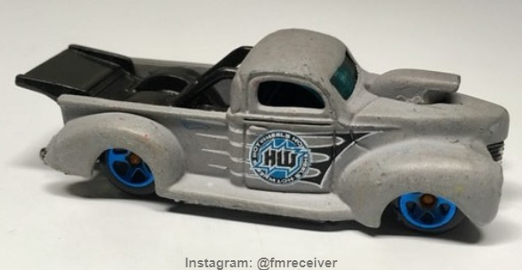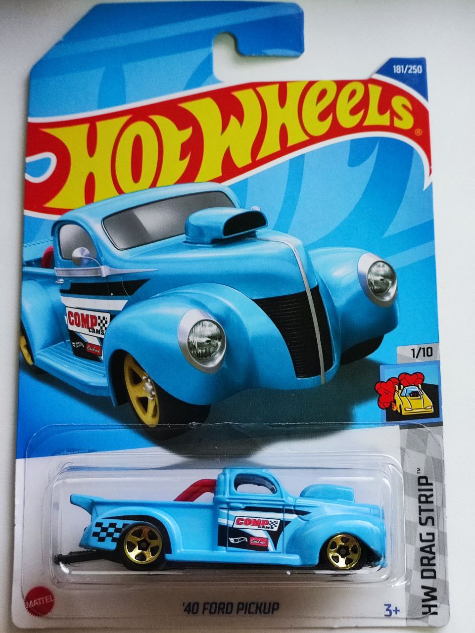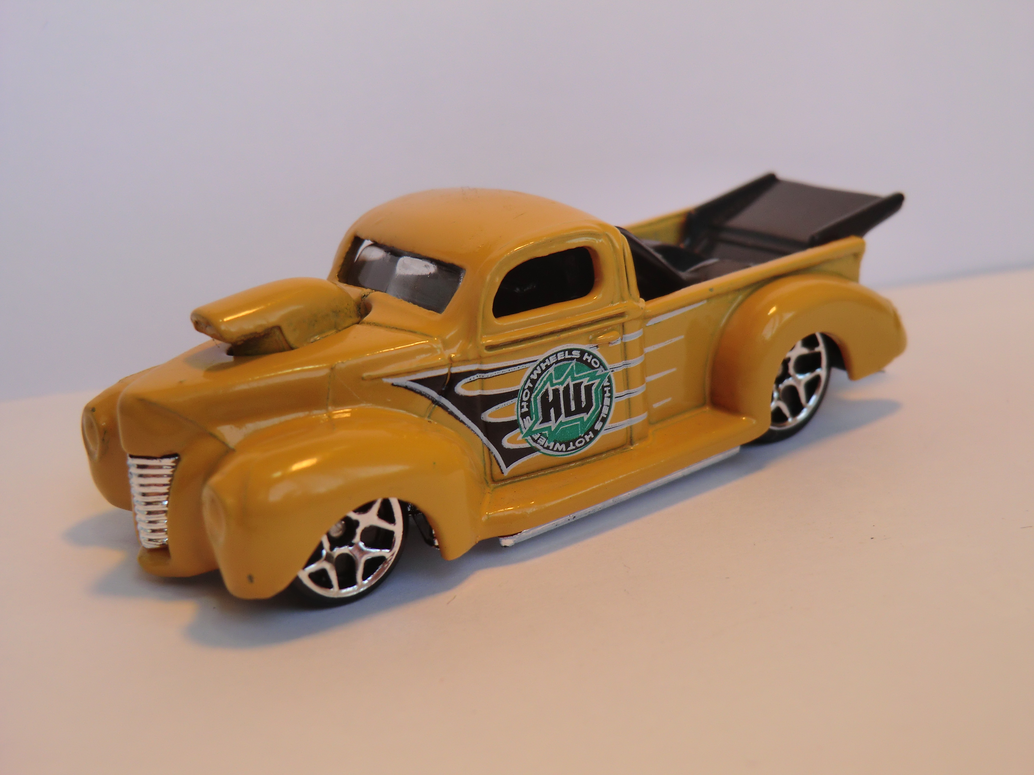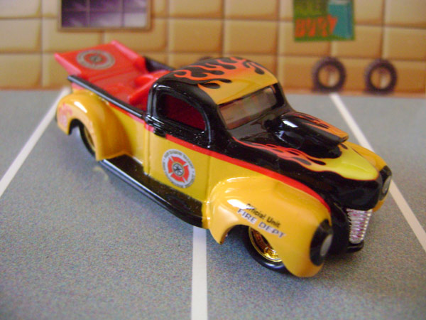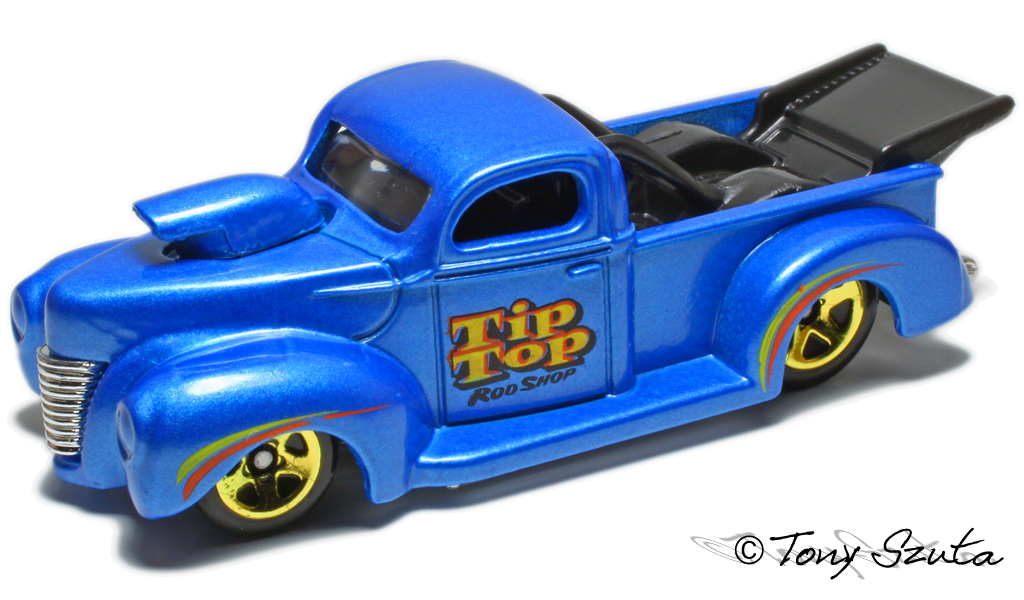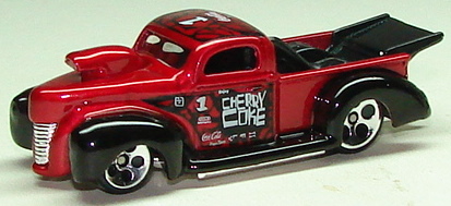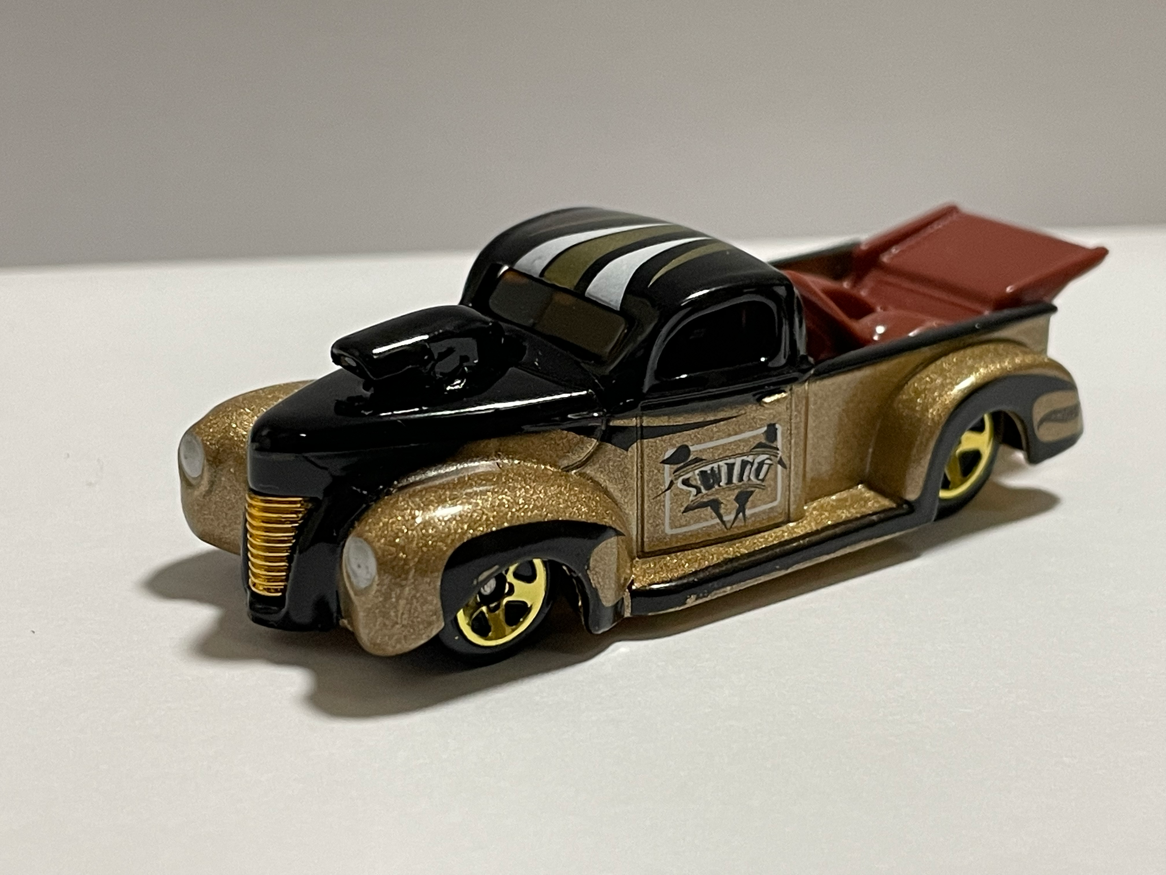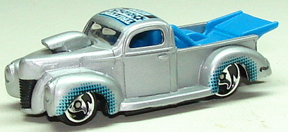 The '40 Ford is a modified drag racing version of the 1940 Ford Pickup. It was designed by Phil Riehlman and debuted in the 1998 First Editions. It has been used numerous times since its conception in several mainline and premium series, and notably as a Treasure Hunt in 2002. Phil Riehlman's initials can be found on the base.