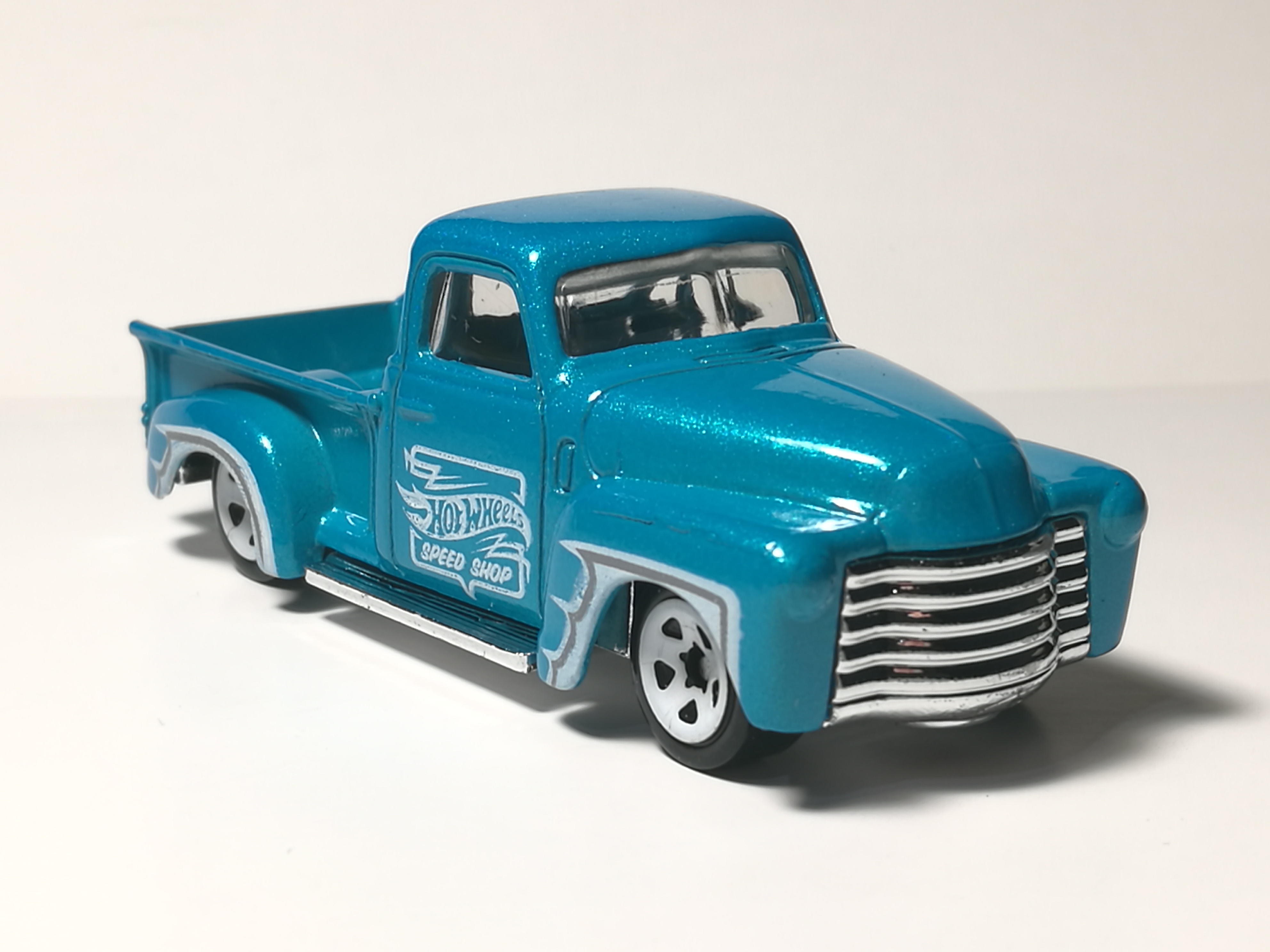 | 2019 | HW Hot Trucks 5-Pack | Metalflake Aqua | "Hot Wheels speed shop" & White trim on sides | Chrome / Plastic |