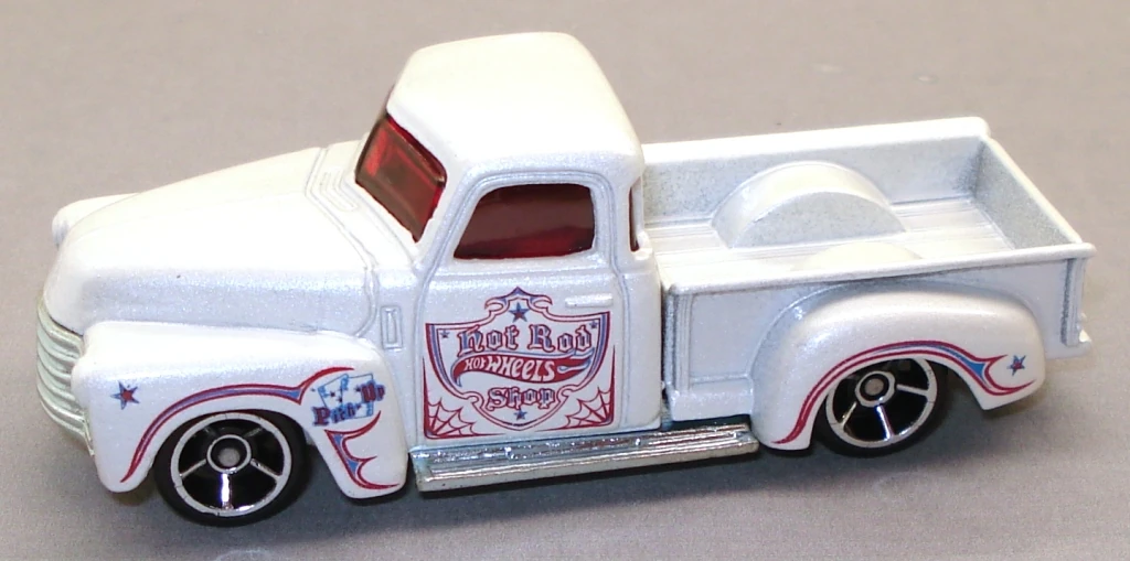 | 2011 | HW Hot Rods 5-Pack | Pearl White | Red & Blue "Hot Wheels Hot Rod Shop" | Unpainted / Metal |