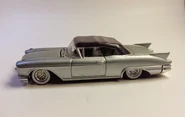 This Cadillac was released in the collector-aimed 100% Line. It has the convertible roof in the closed position and an opening hood.