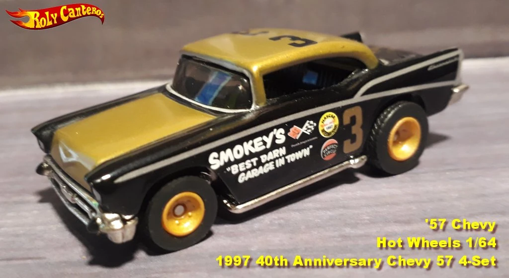 | 1997 | 40th Anniversary '57 Chevy 4-Car Set | Black & Gold | #3 & SMOKEY'S 'Best Darn Garage In Town' | Chrome / Plastic |