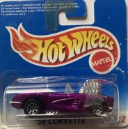 The '58 Corvette Coupe is a Hot Wheels casting based on the GM production car and was recreated in 1/64 scale by Hot Wheels designer Larry Wood. Despite the name of the casting, the '58 Corvette Coupe name is not accurate as the Corvette was never available in coupe form until 1963; a removable hard top could however be ordered. Larry created two versions for collectors, one version has a blown engine and the second version has an opening hood. However; the metallic purple painted casting introduced in 1995 and distributed in 1996 and 1997 as well - did not come in a closed hood (none blown engine) version.