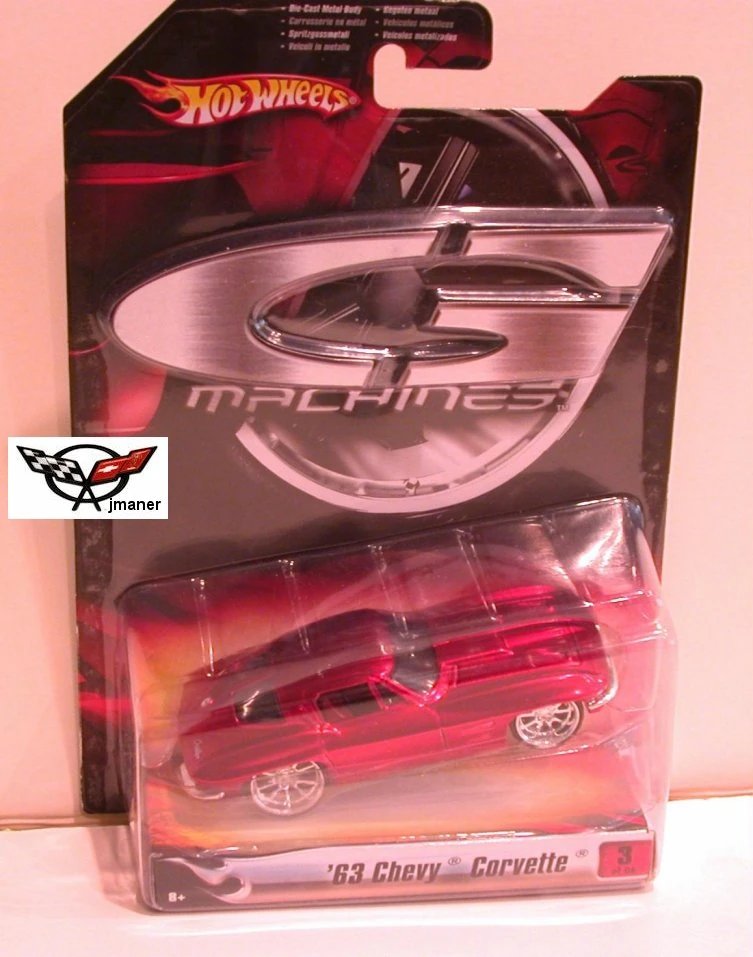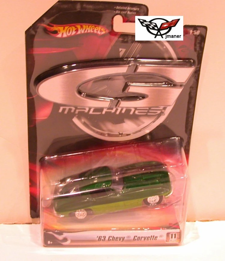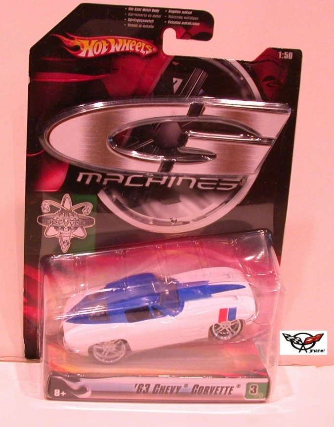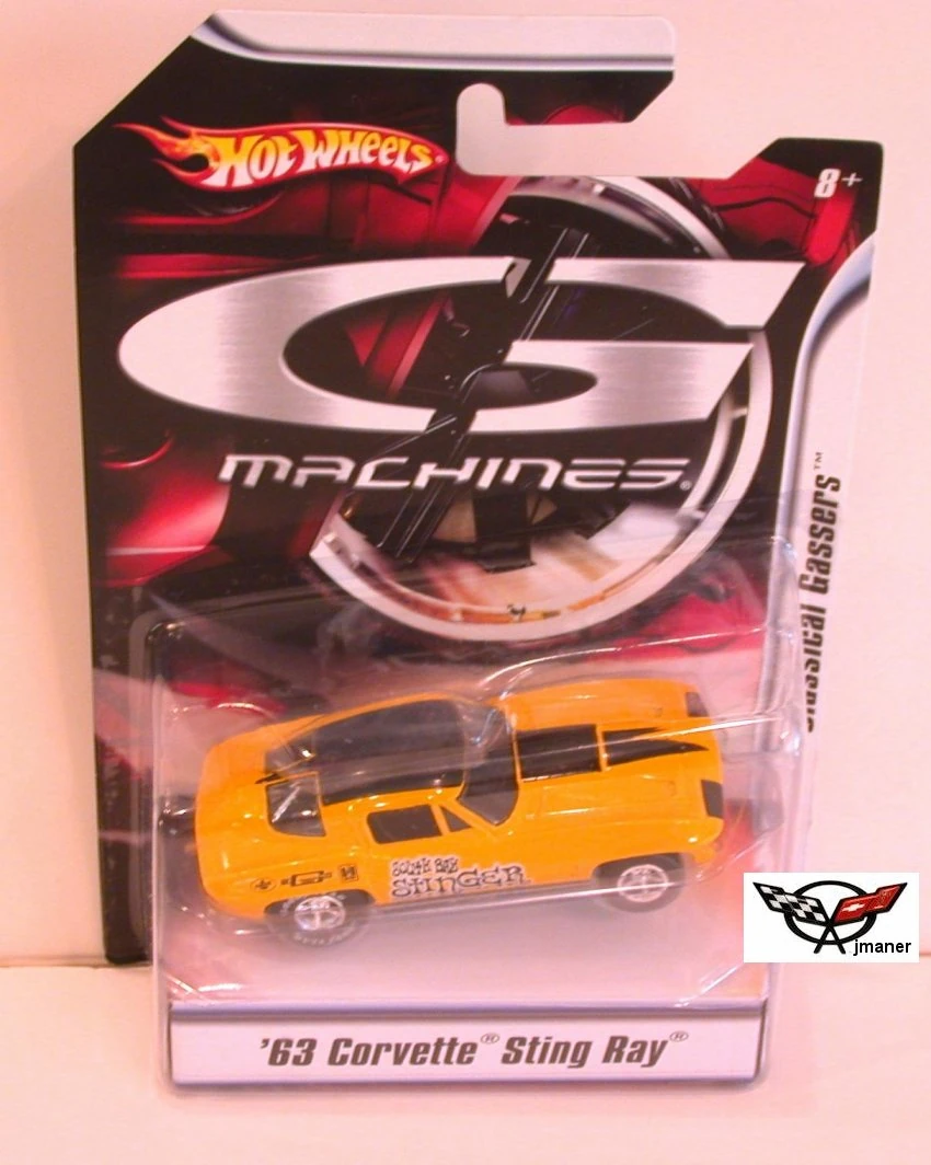 | 2008 | G-Machines: Classical Gassers | Yellow | "South Bay Stinger" & various sponsors on sides | Black / Plastic | Clear | Black | RR | China | Named '63 Corvette Sting Ray Modified Casting |