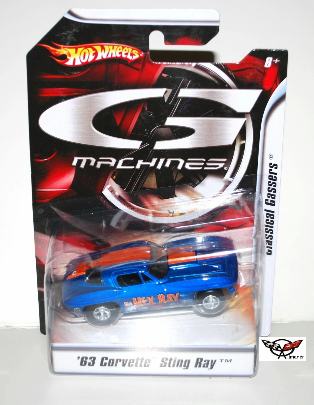 | 2008 | G-Machines: Classical Gassers | Blue | Orange stripe on top, "The Hex Ray" & various sponsors on sides | Black / Plastic | Clear | Black | RR | China | Named '63 Corvette Sting Ray Modified Casting |