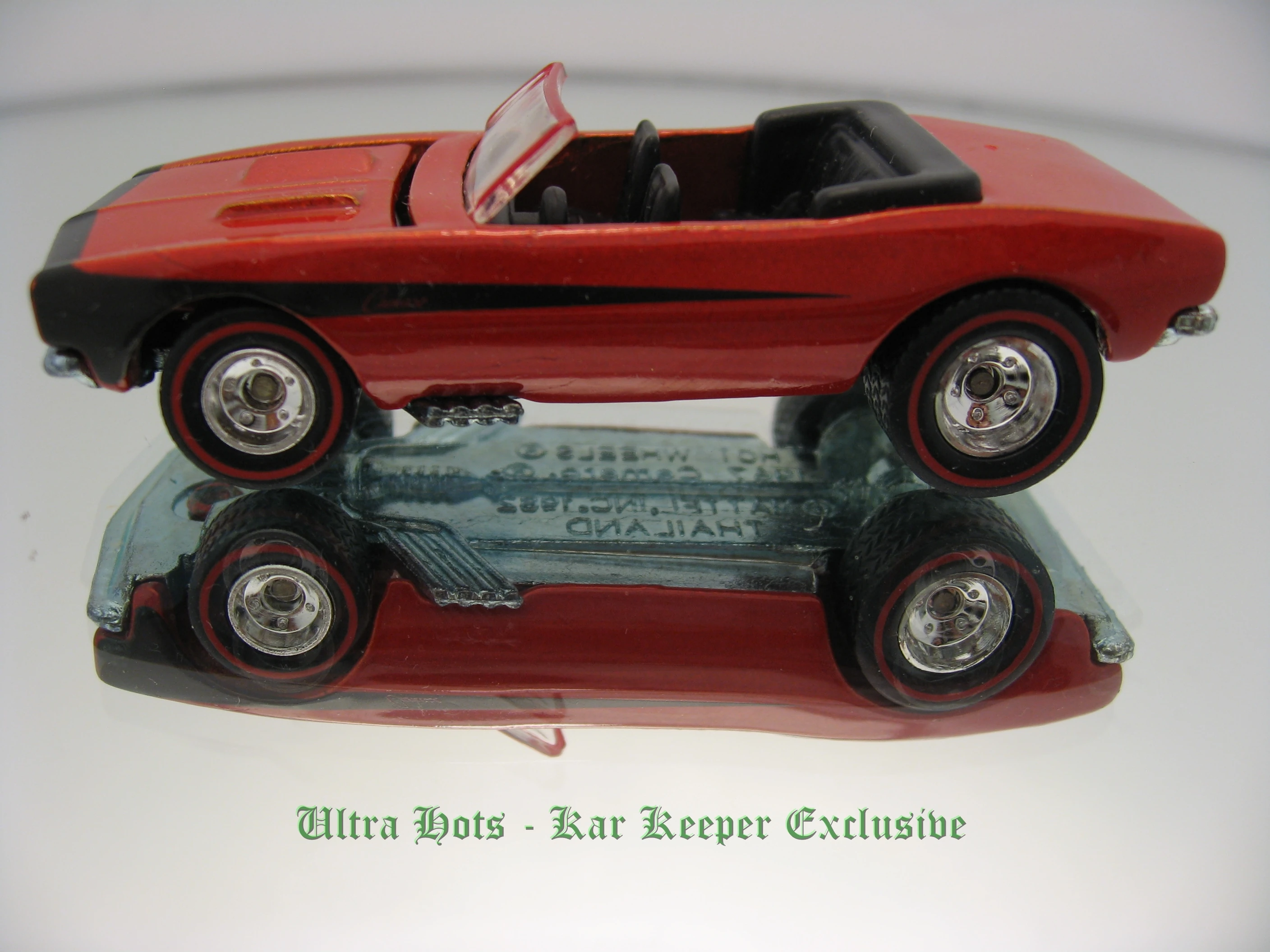 | 2007 | Ultra Hots | Metalflake Red | Black Stripe, Red 'Camaro' on sides, Black Stripe on hood | ZAMAC | Clear | Black | RLRR | L1642 | Thailand | Kar Keepers Exclusive |