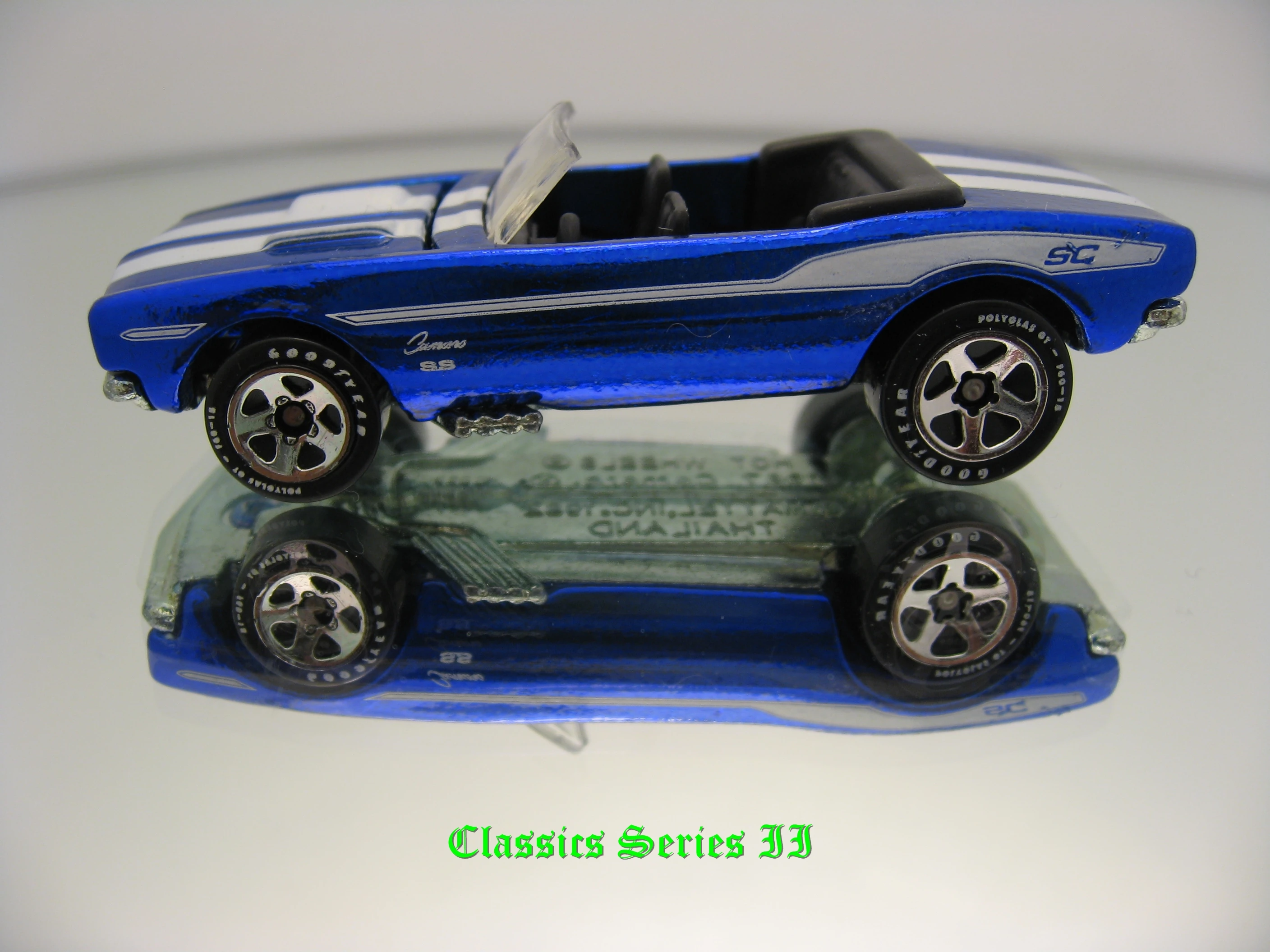 Spectraflame Blue | White stripes on top, & White stripe on sides | ZAMAC | Clear | Black | GY5SP | J2763 | Thailand |