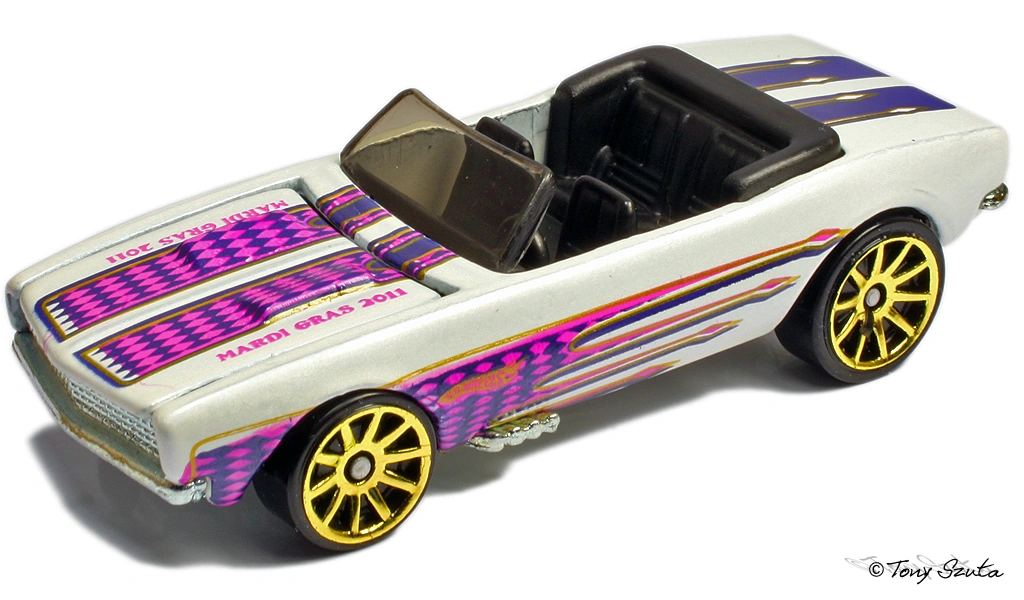 The '67 Camaro Convertible is a convertible version of the '67 Camaro which was one of the first cars released in the 1968 Hot Wheels series but was named 'Custom Camaro' and had door outlines.