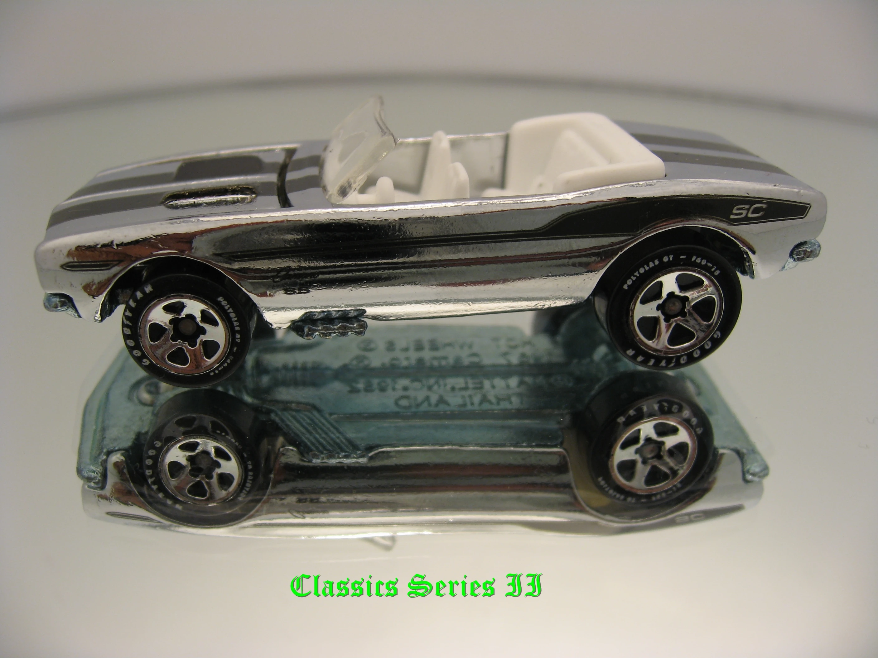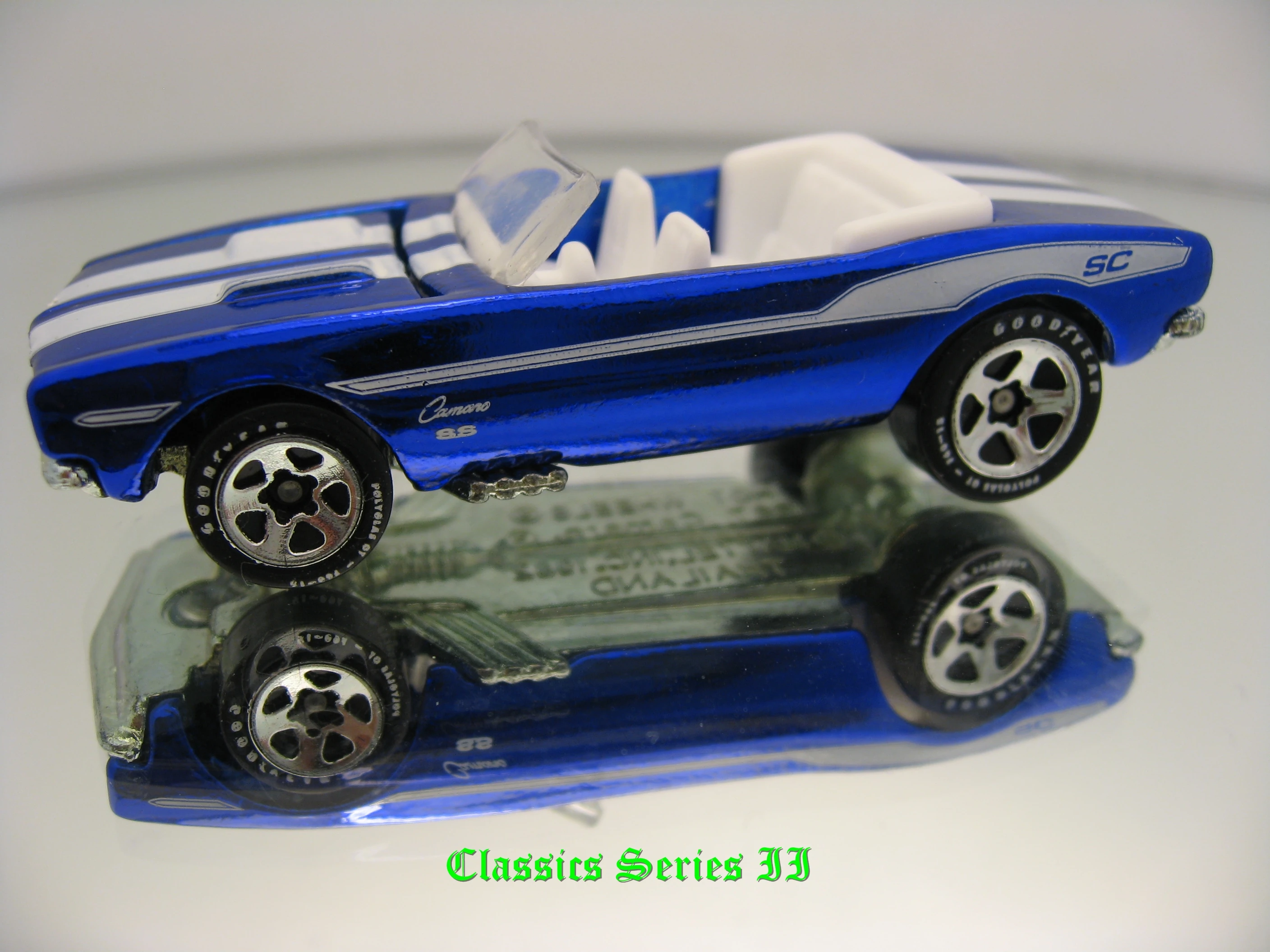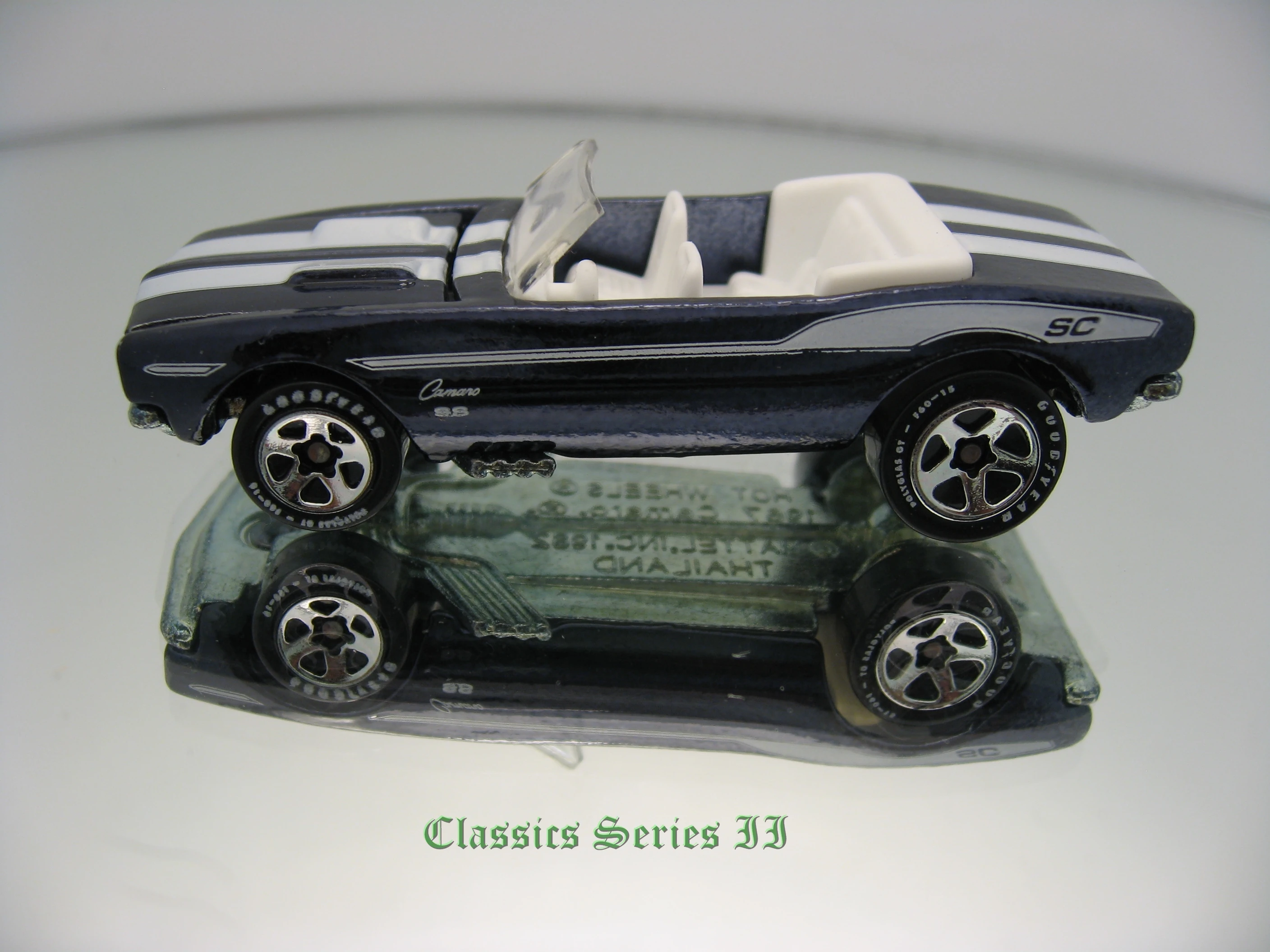 | 2007 | Ultra Hots | Metalflake Green | Silver Stripe, Black "Camaro" on sides, Silver Stripe on hood | ZAMAC | Clear | White | RLRR | L1641 | Thailand | Kar Keepers Exclusive |
