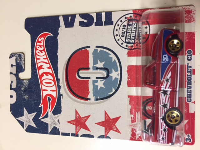 Red | Blue, Silver & White stripes on the side, Black stars with Silver outline and White Hot Wheels 50 logo | Black / Plastic |