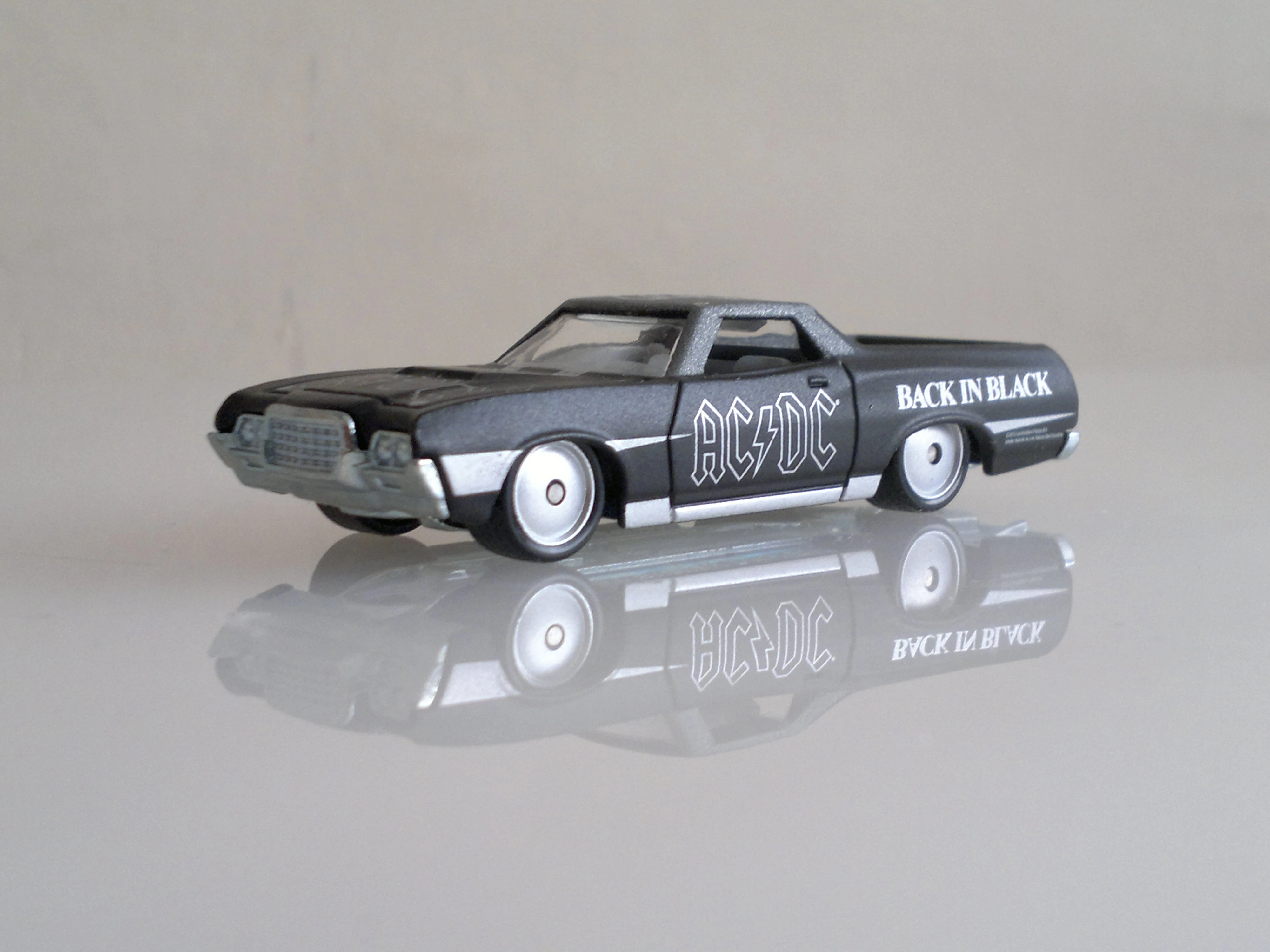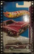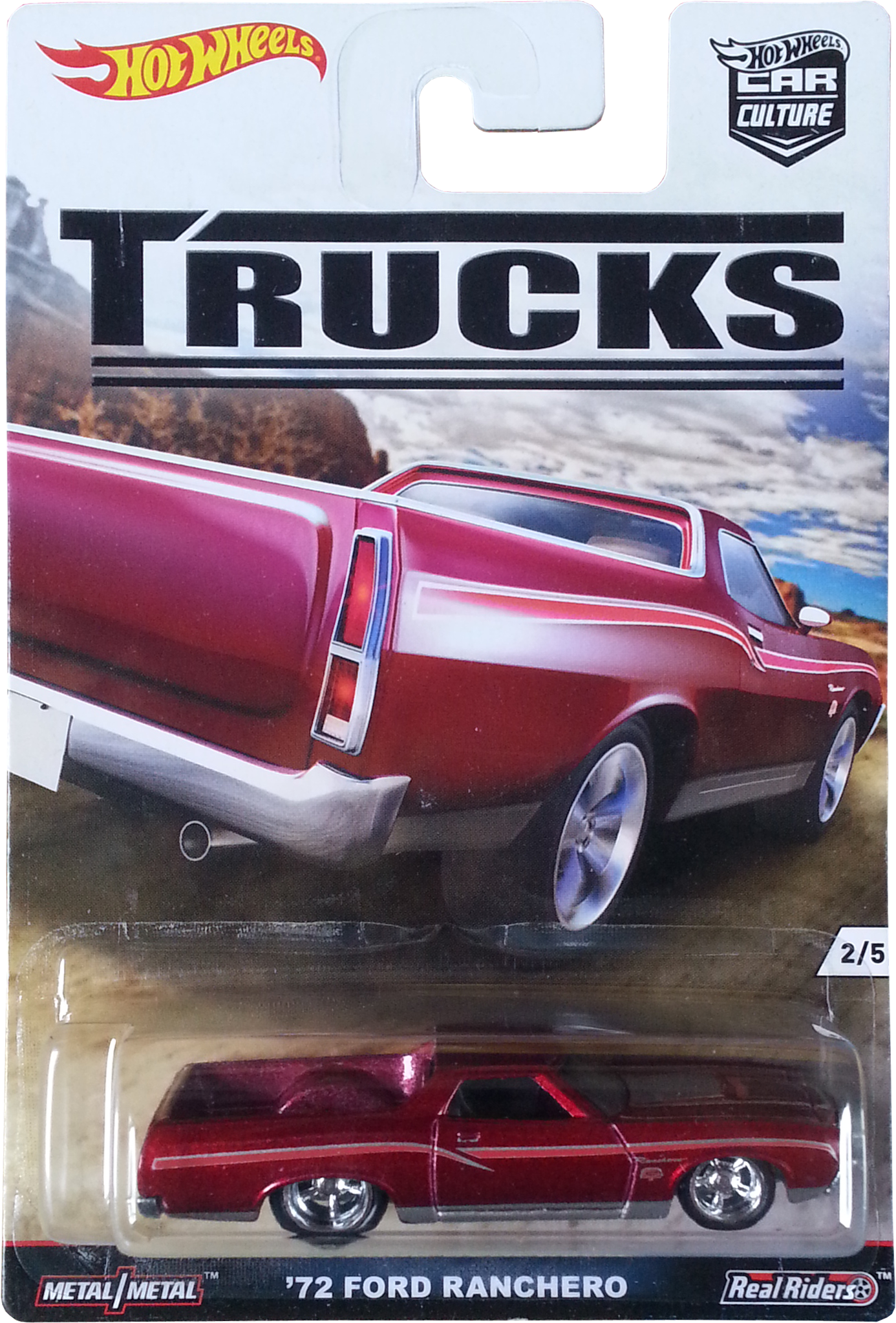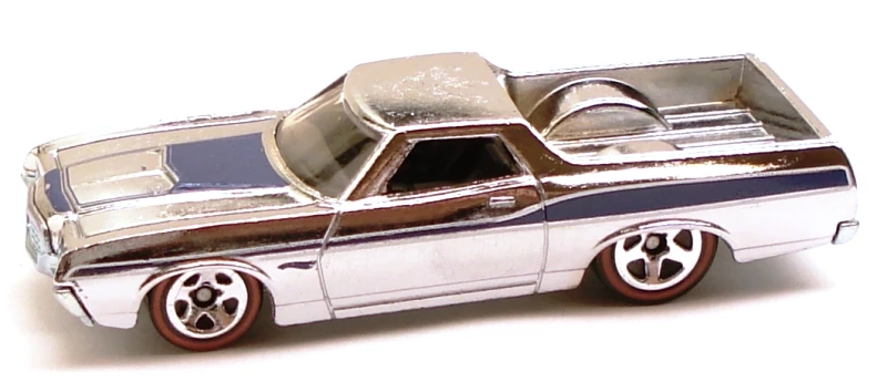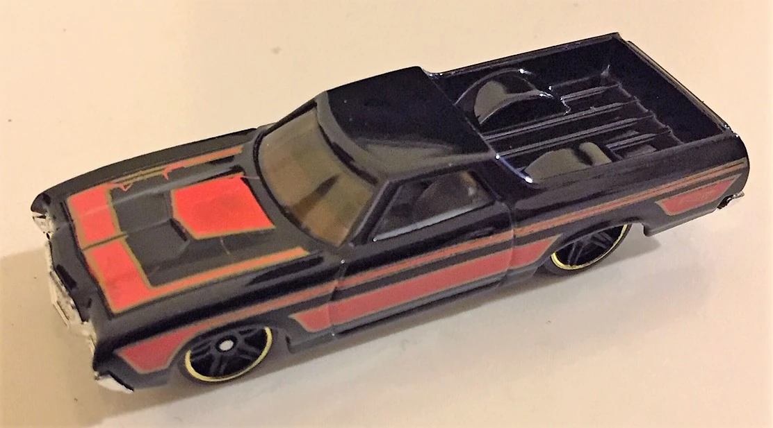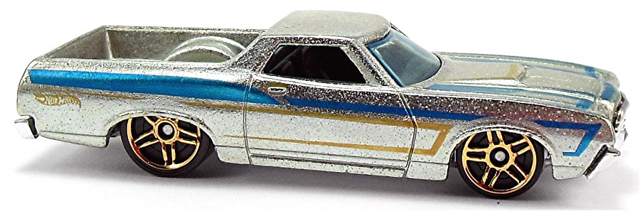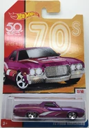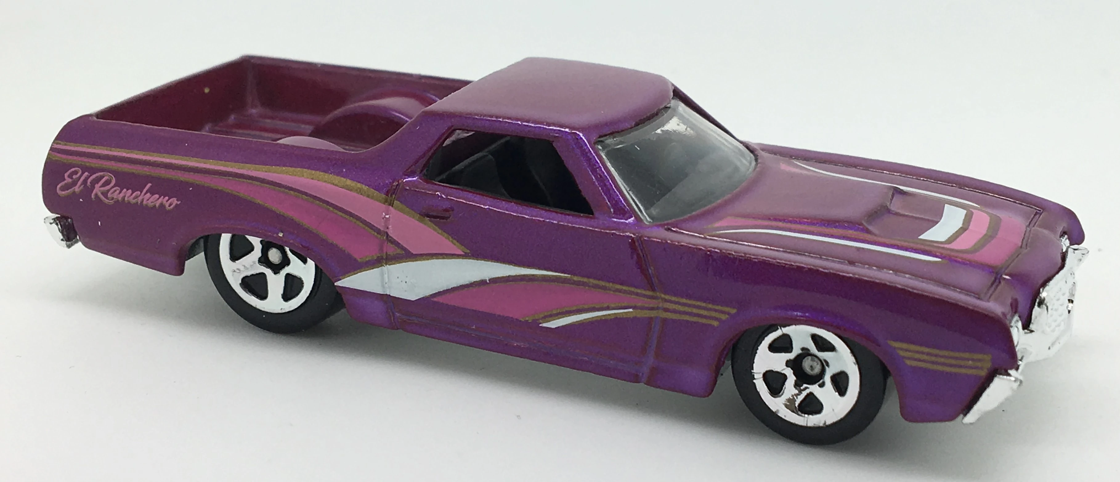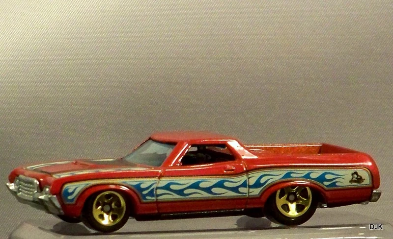 Spectraflame purple | Black and silver flames on sides and hood; "El Ranchero", "72", "TH", "H/W", & Hot Wheels logo on sides | ZAMAC | Light smoke tint | Black | "HOT WHEELS" "RADIAL TIRES" chrome rim, black RR10SP | JDK57 | Malaysia | 1,350 produced Base code(s): T33 |
