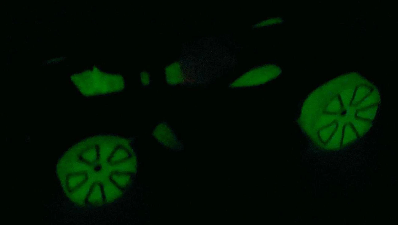 Clear | Glow In The Dark | Blue TRAP5 w Orange tires | GBD40 | Malaysia | Base Code(s): L44 |