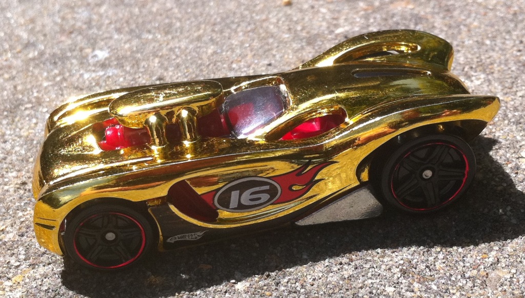 The 16 Angels is an original Hot Wheels design of a 16 cylinder sports car. Inspiration for the car came from the Jaguar E-Type. Nathan Proch first thought about naming the car "E-go Type", but, wanting to avoid being called an ego maniac, changed the name to "Saturday Night Special". Legal put the kibosh on that one for obvious reasons. The eventual choice of "16 Angels" was for its cylinders, and, angels... (from Nathan Proch’s Heavenly Car, a Red Line Club exclusive article by HWC Gary):
