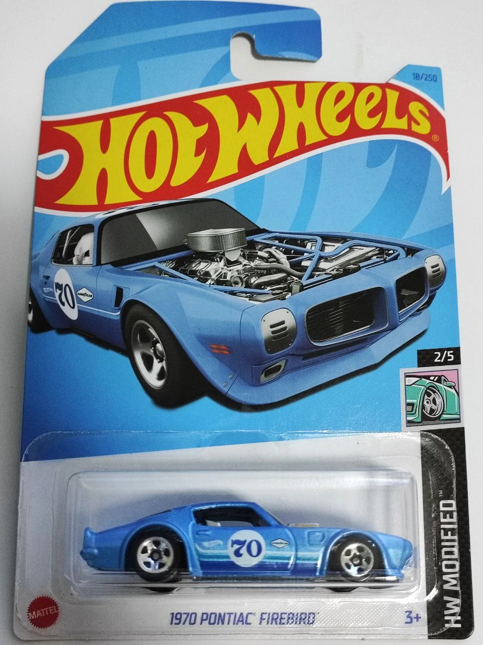 Metallic Light Blue | Blue, Light Blue, and White lines, "70" on roof and sides, "GOODYEAR" and HW logo on sides | Black / Plastic |
