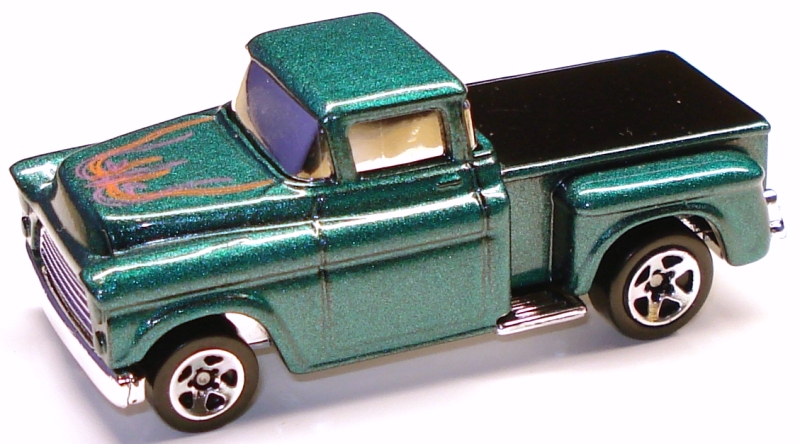 | 16675 | 578 | 1/12 | '56 Flashsider | Metallic Teal | Orange and Magenta pinstripe design on hood. Orange HW logo on tailgate | Chrome / Plastic |