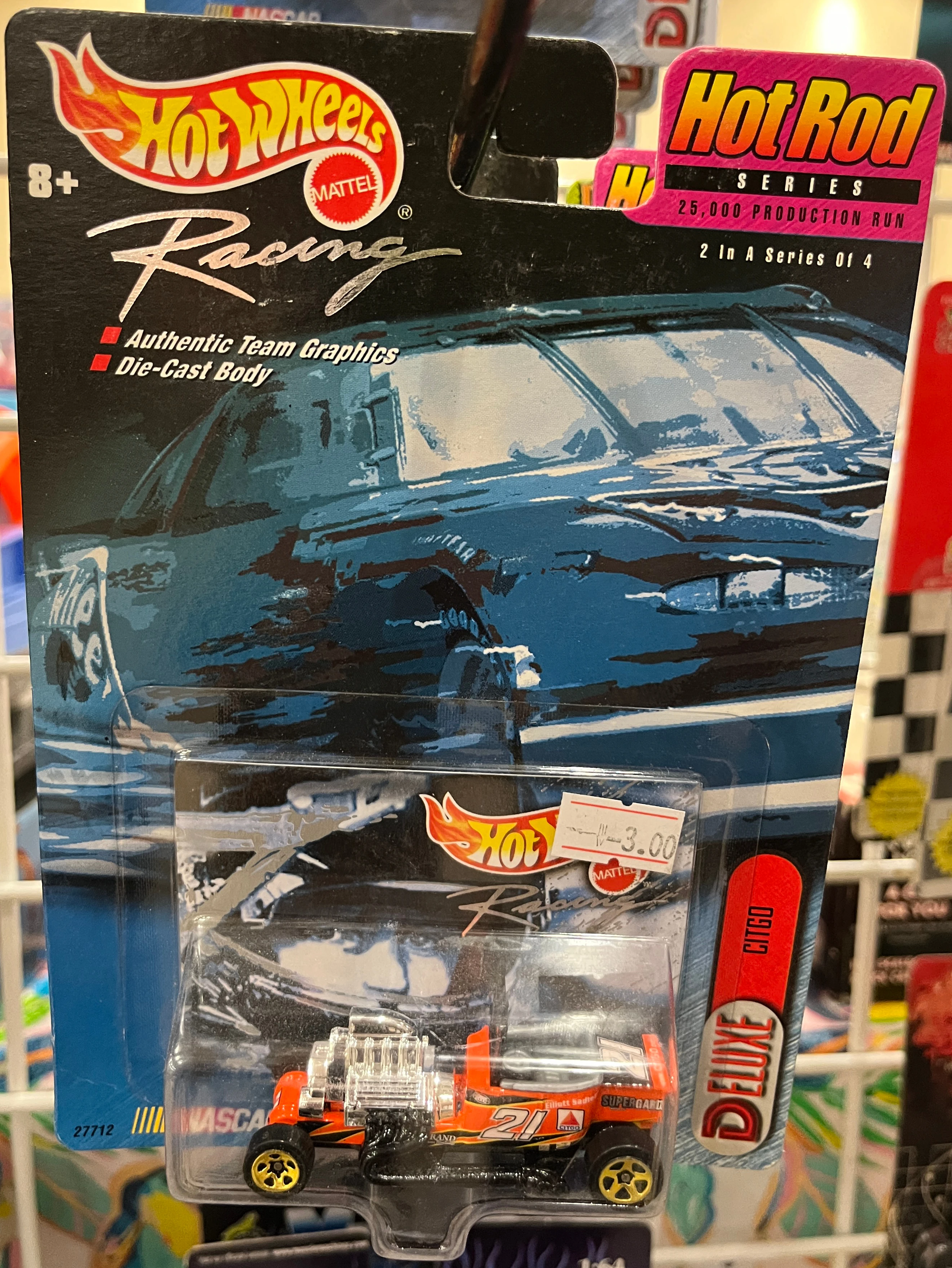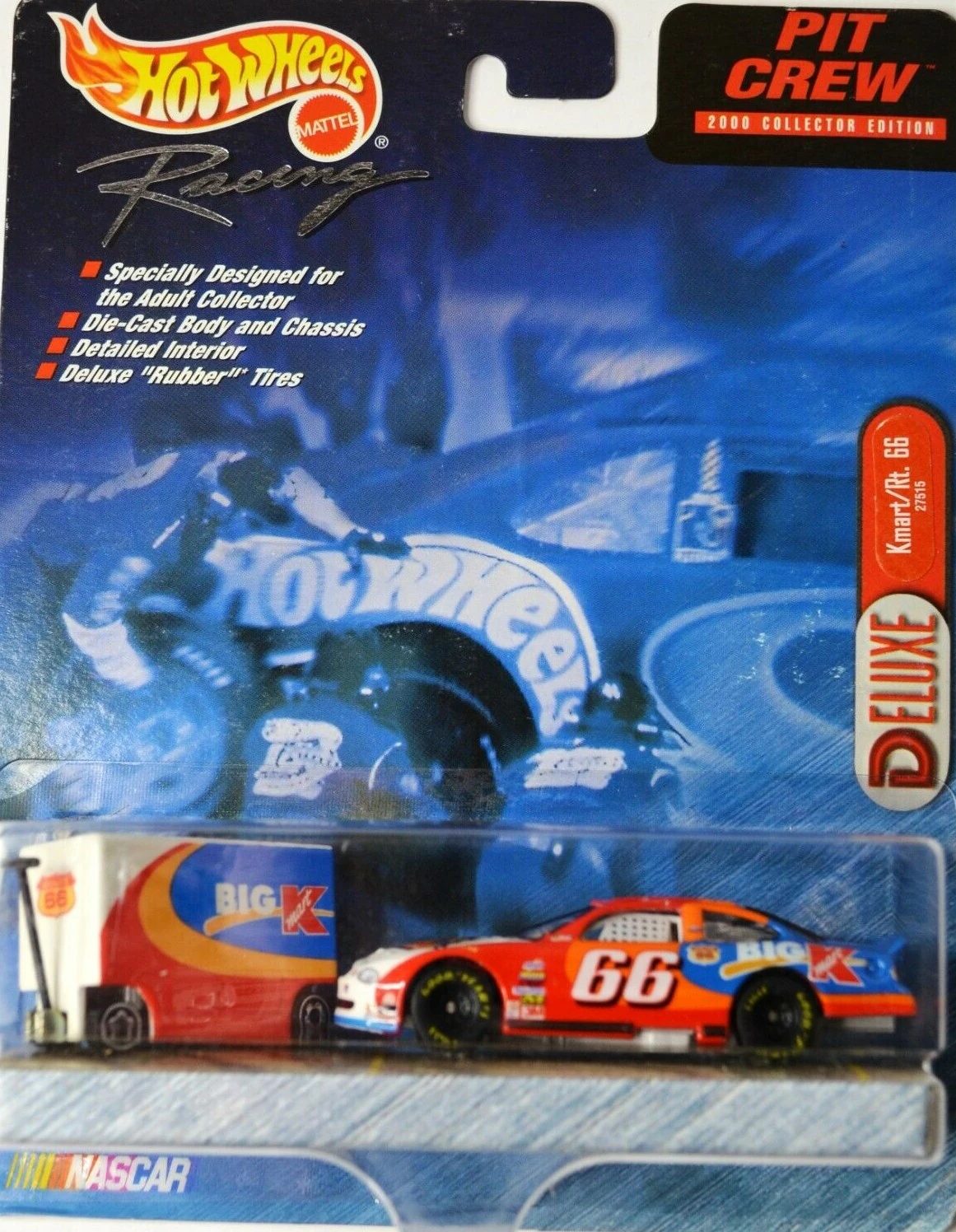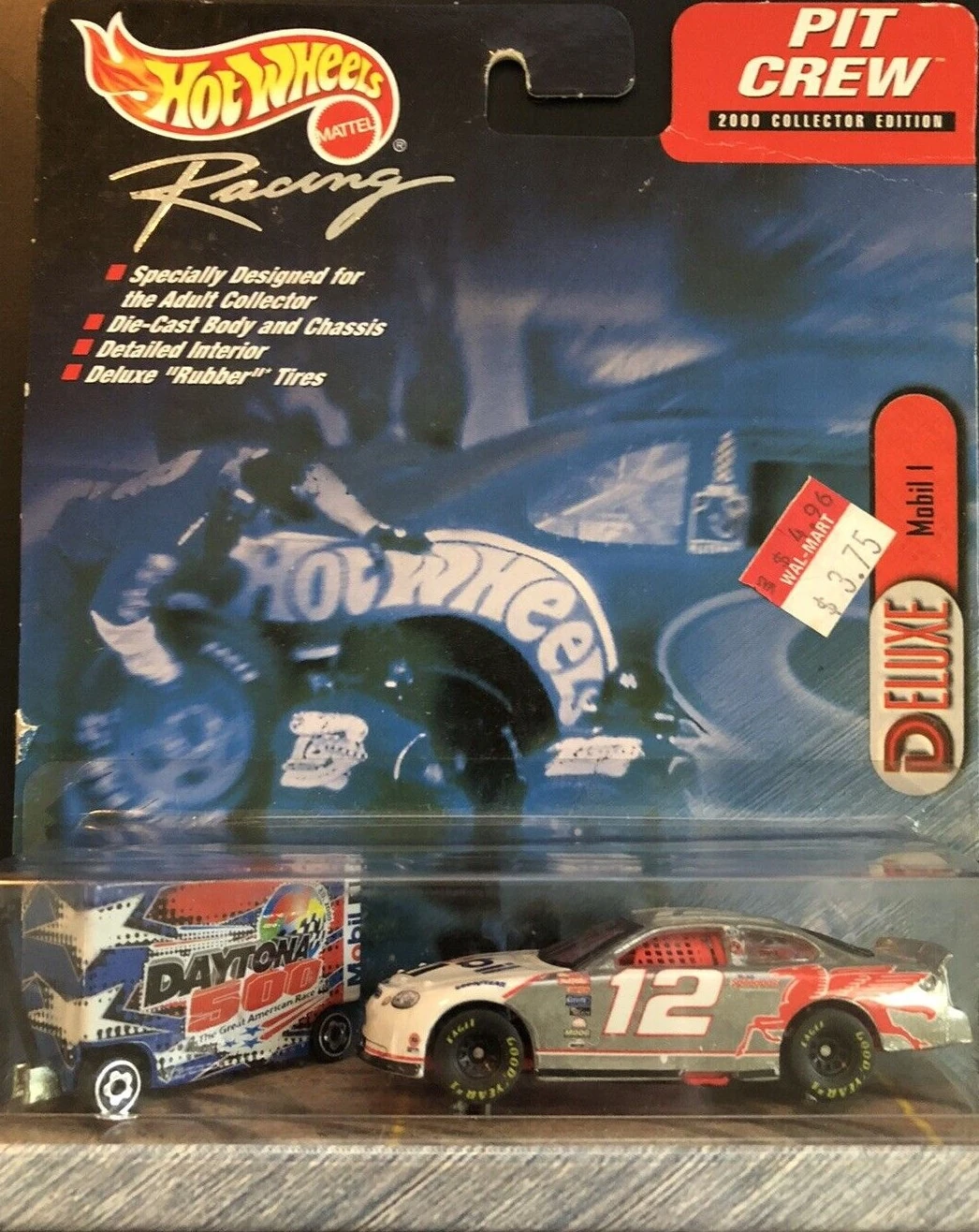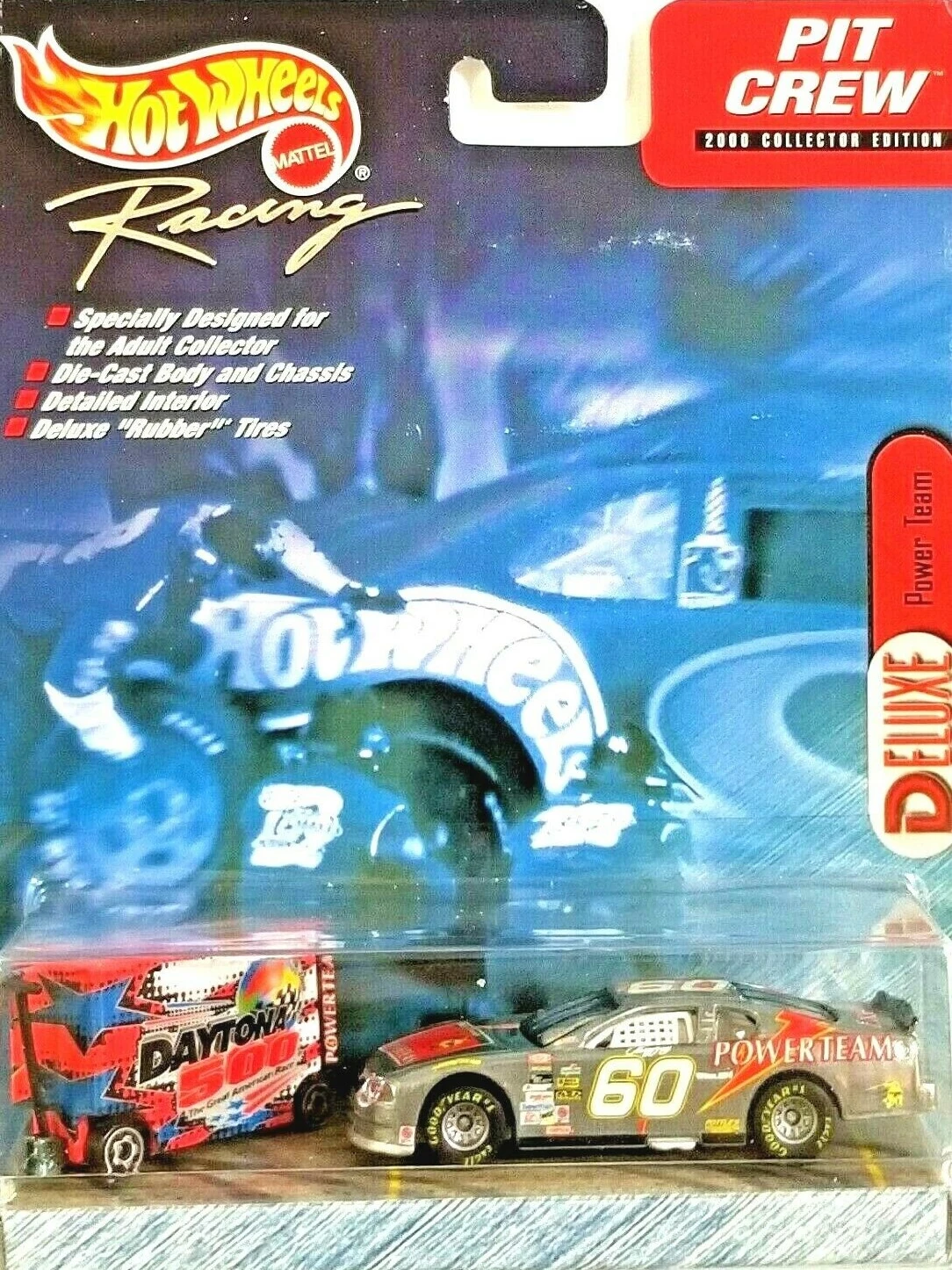"Hot Wheels Racing celebrates its partnership with the Daytona 500 and the International Speedway Corporation by issuing this exclusive Pit Crew edition, featuring a tool box decorated with special ISC logos and a cool car with the look of stainless steel. It's a great way to commemorate the 2000 NASCAR season, as the nation's fastest growing spectator sport accelerates into the next golden age of racing."