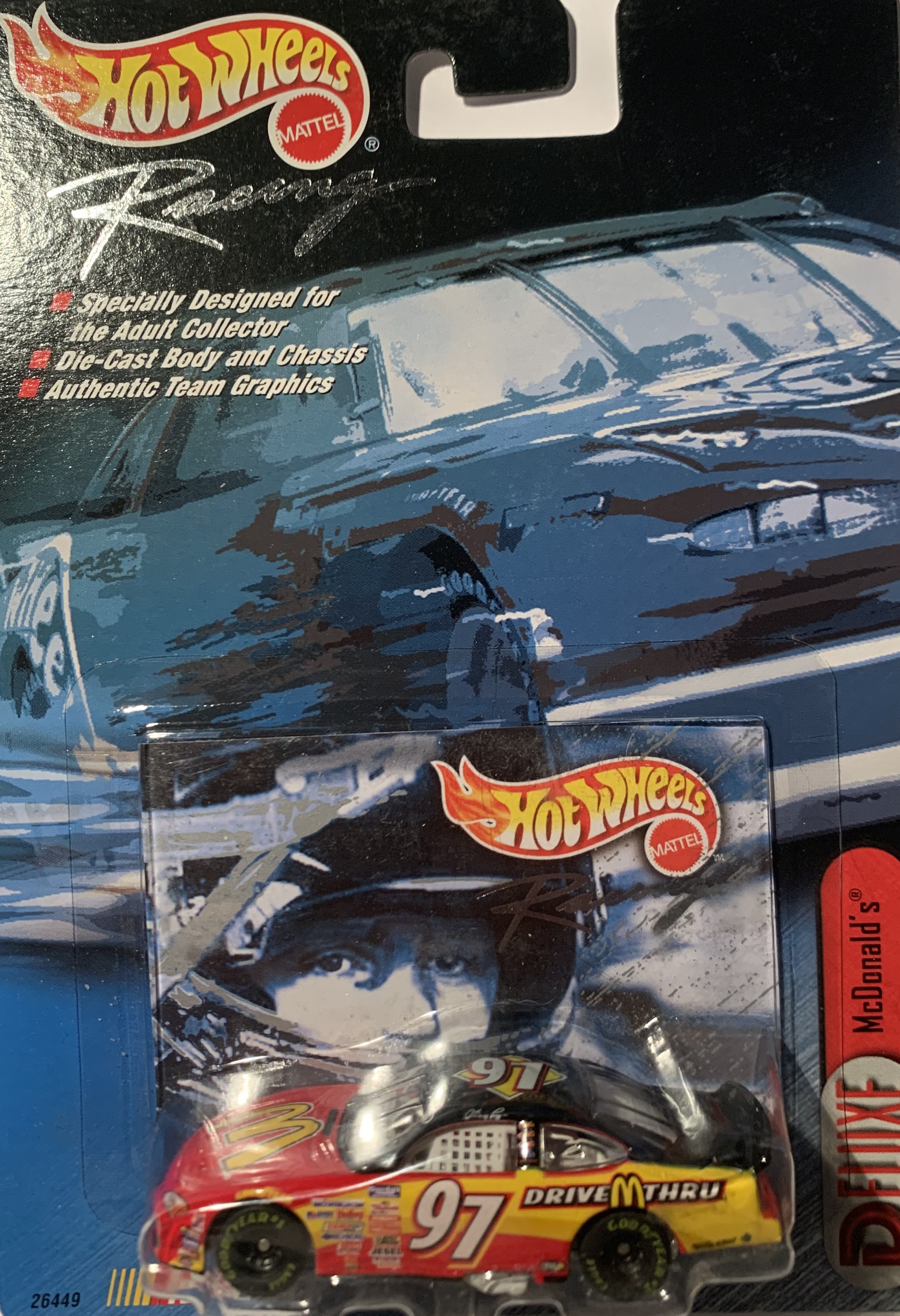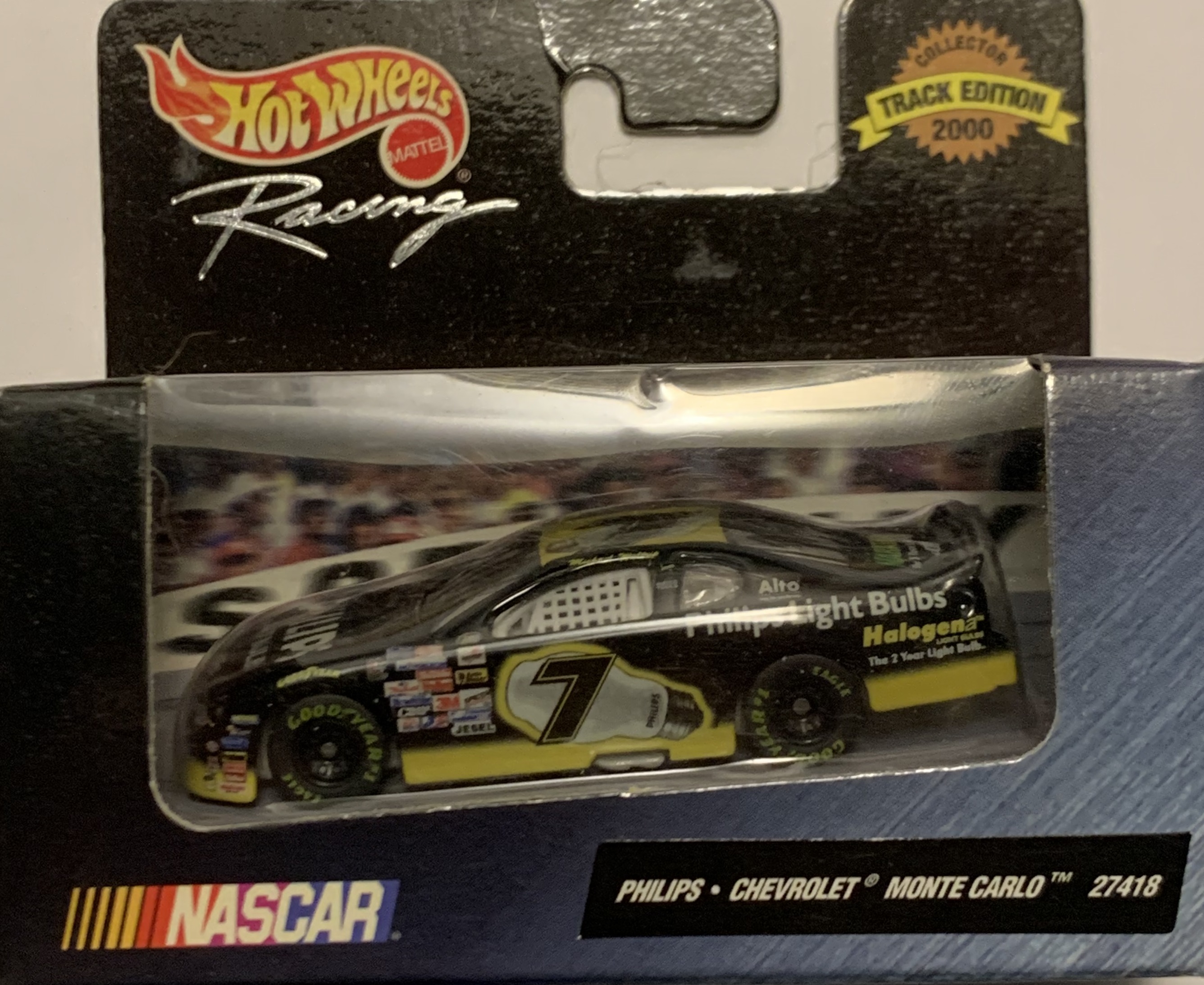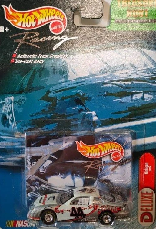 "The excitement of a NASCAR race is greatly enhanced by the venue at which it is held - raceways rich in heritage, as well as new, state-of-the-art speedways where racing history is created at every turn. To commemorate these famous tracks and the traditions they represent, Hot Wheels Racing presents its 2000 Treasure Hunt series. These limited edition vehicles are emblazoned with the logos of some of the most exciting tracks on the NASCAR circuit and are sure to be a hit with collectors!"