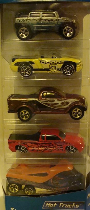 Only 2 of the cars came in 5-Pack along with 3 random cars from other 5-packs from 2006. It takes 3 of these 5-Packs to get all 5 cars.