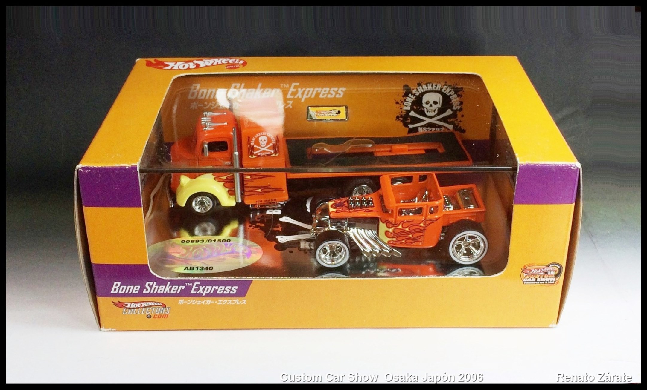 | L3527 | '38 Ford C.O.E. Truck | Orange | Yellow Flames, Skull & Cross-Bones and 'Bone Shaker Express KS2292' on Side | RR | 500 | 'Bone Shaker Express' 2-Car Set