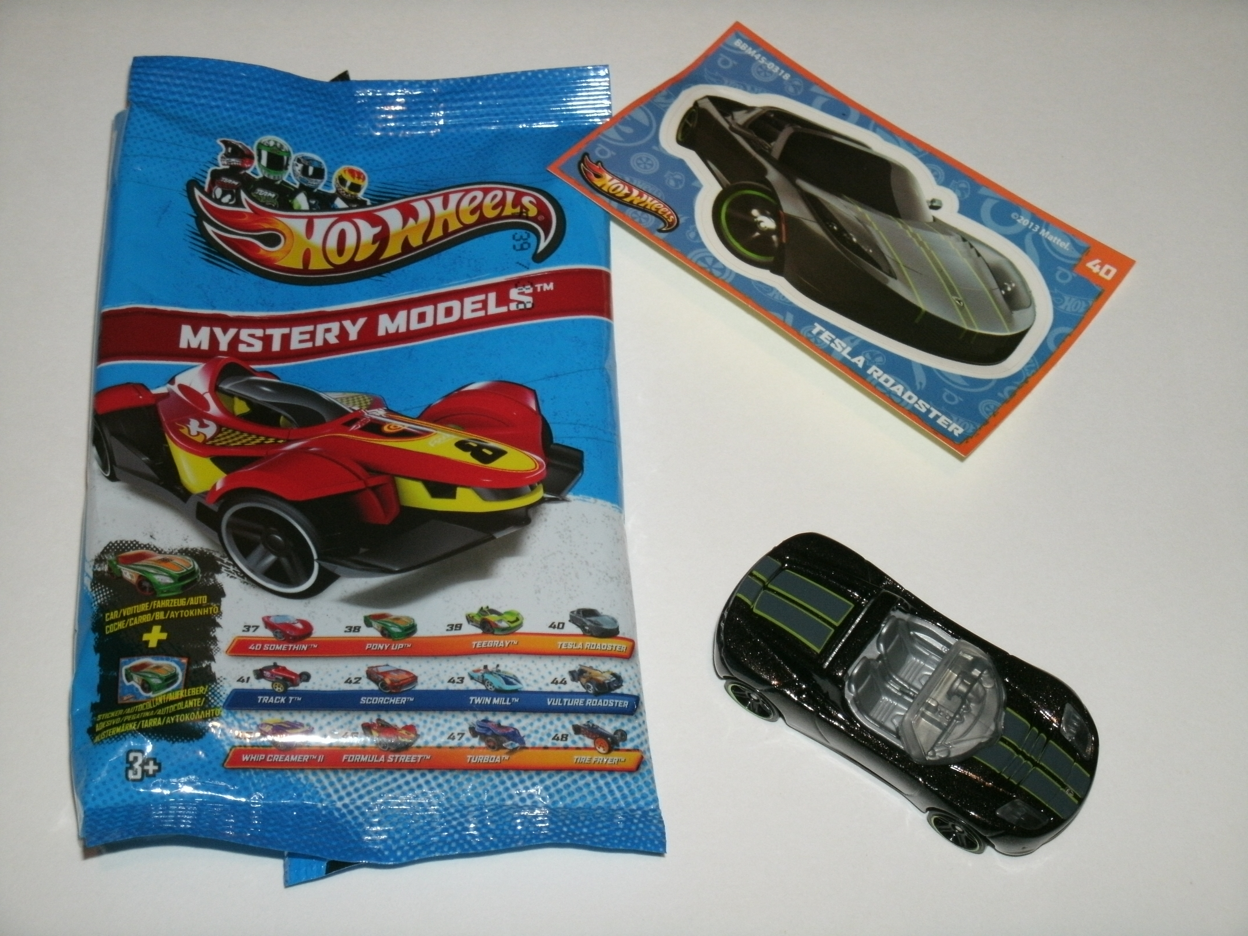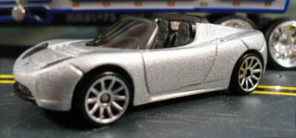 The 2008 Tesla Roadster is a Hot Wheels casting based on the production car of the same name, debuting in the 2008 New Models. The Tesla Roadster is an all-electric sports car produced by the electric car firm Tesla Motors.