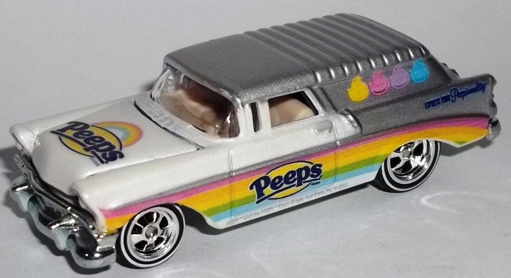 | BDR73 | '56 Chevy Nomad Delivery | Peeps | Pearl White with Silver roof, Peeps deco on sides & hood | WLRRLW5's | Base Code: G02 |