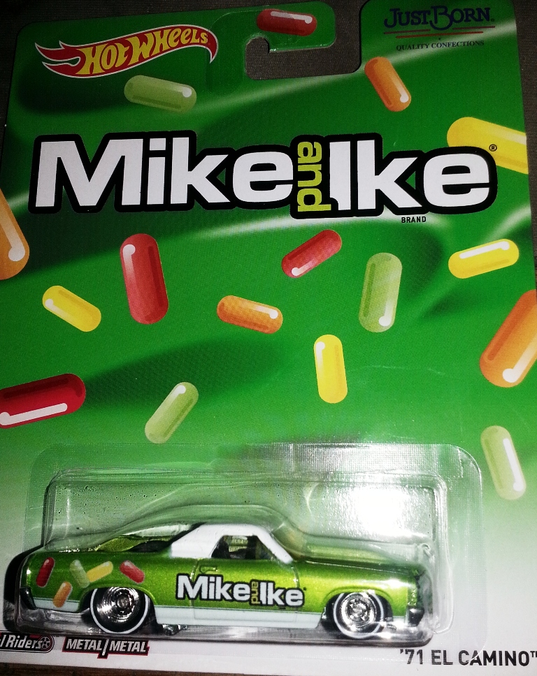 | BDR88 | '71 El Camino | Mike and Ike | Metalflake Green with White roof, White stripes on hood, Mike and Ike deco on sides | WLRRMag's | Base Code: G01 |