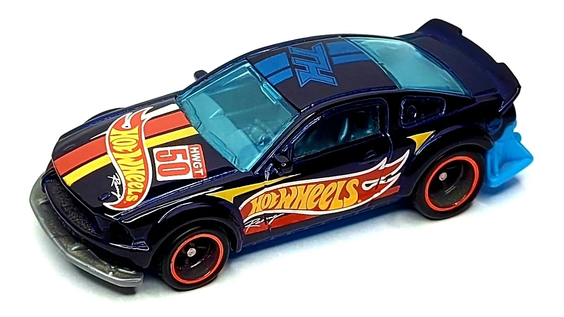 2005 Ford Mustang | Spectraflame Blue | Hot Wheels Racing, Red White Stripes,HWGT 50 on the hood | Light Blue / Plastic |