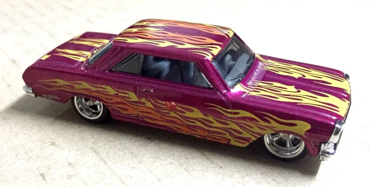 '63 Chevy II | Spectraflame Magenta | Yellow and Orange flames on side and top | Chrome / Plastic |