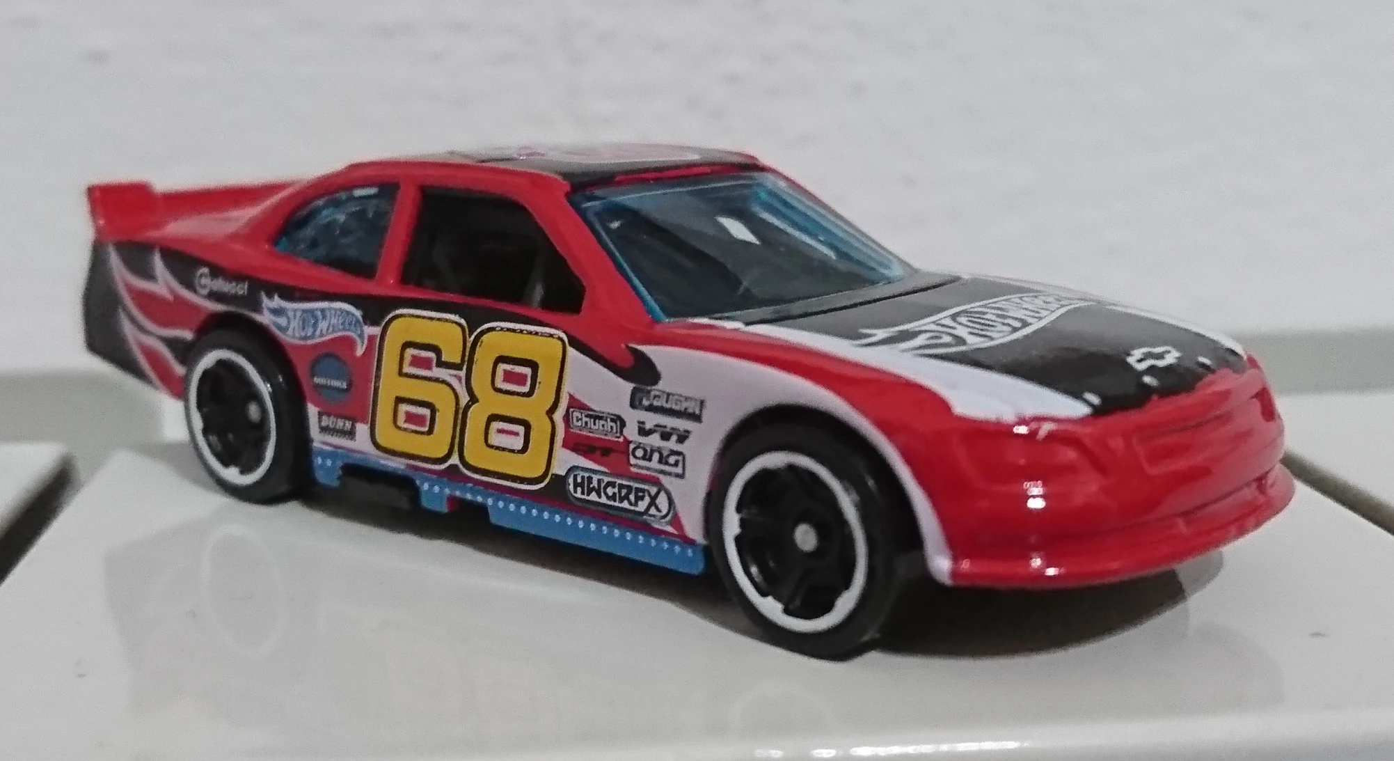 '68' and Sponsors Logos on side, Black & White Stripes and Hot Wheels logo on sides and hood