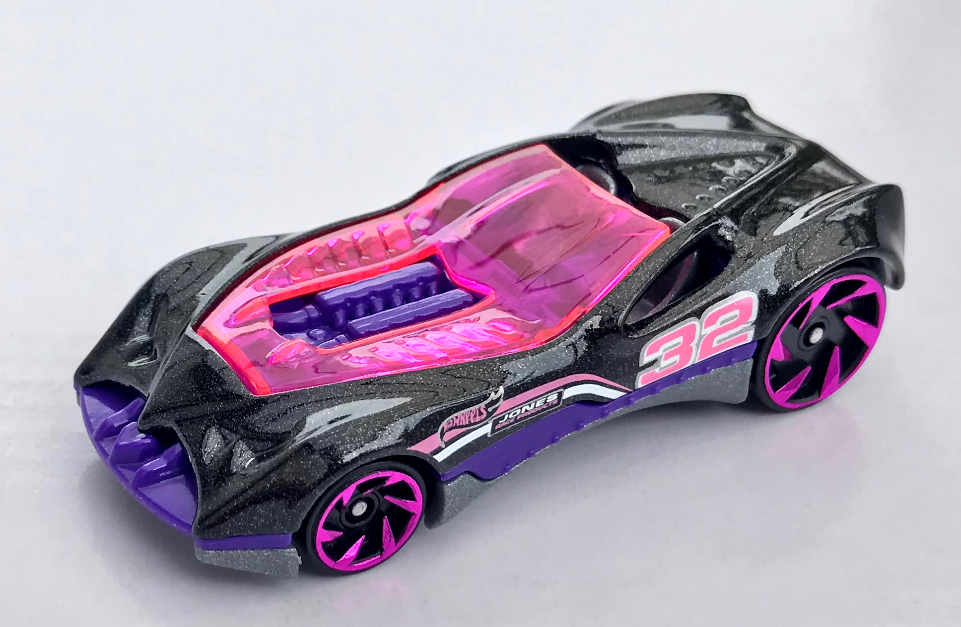 Pink & White Stripes, '32' and 'Jones Race Products' on side