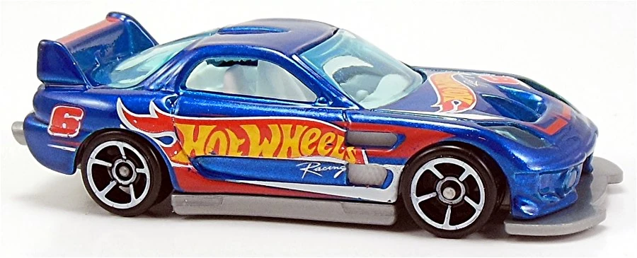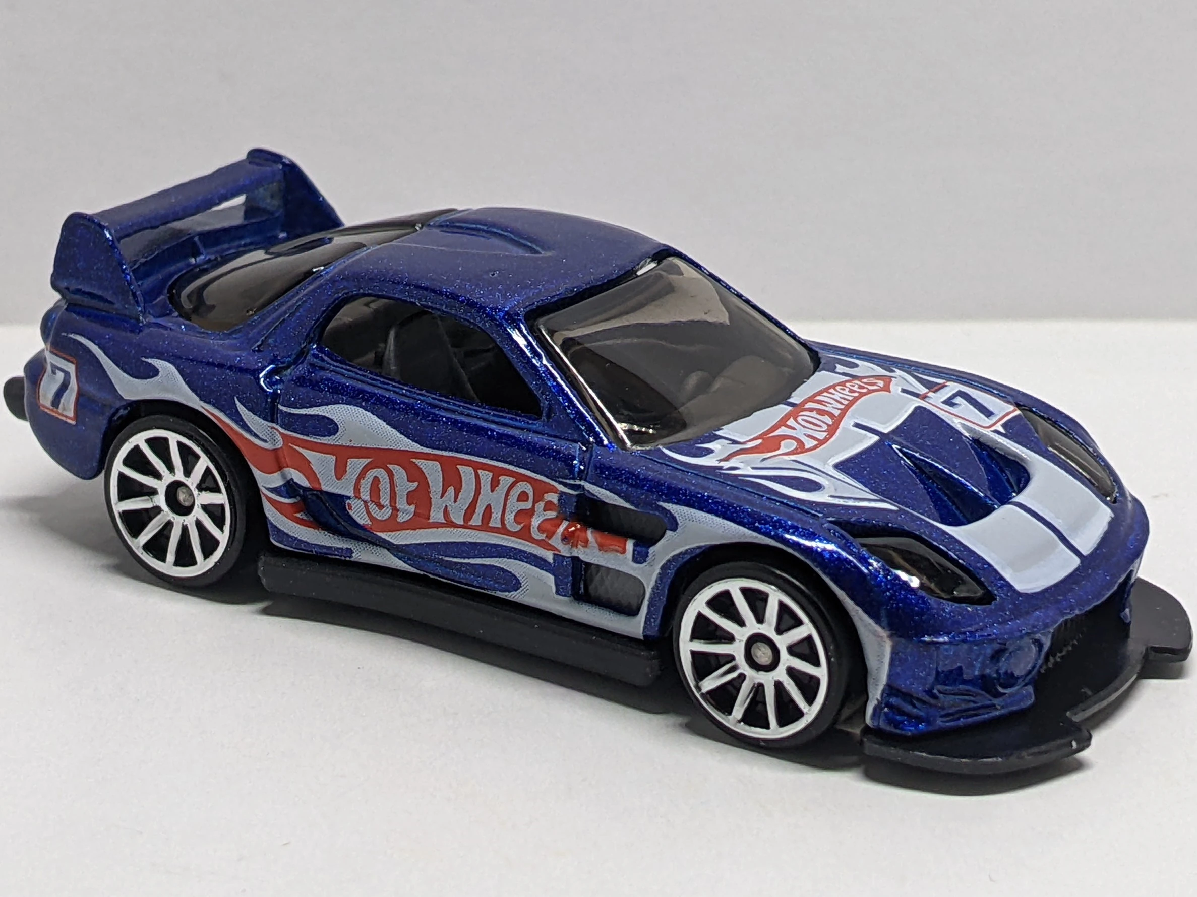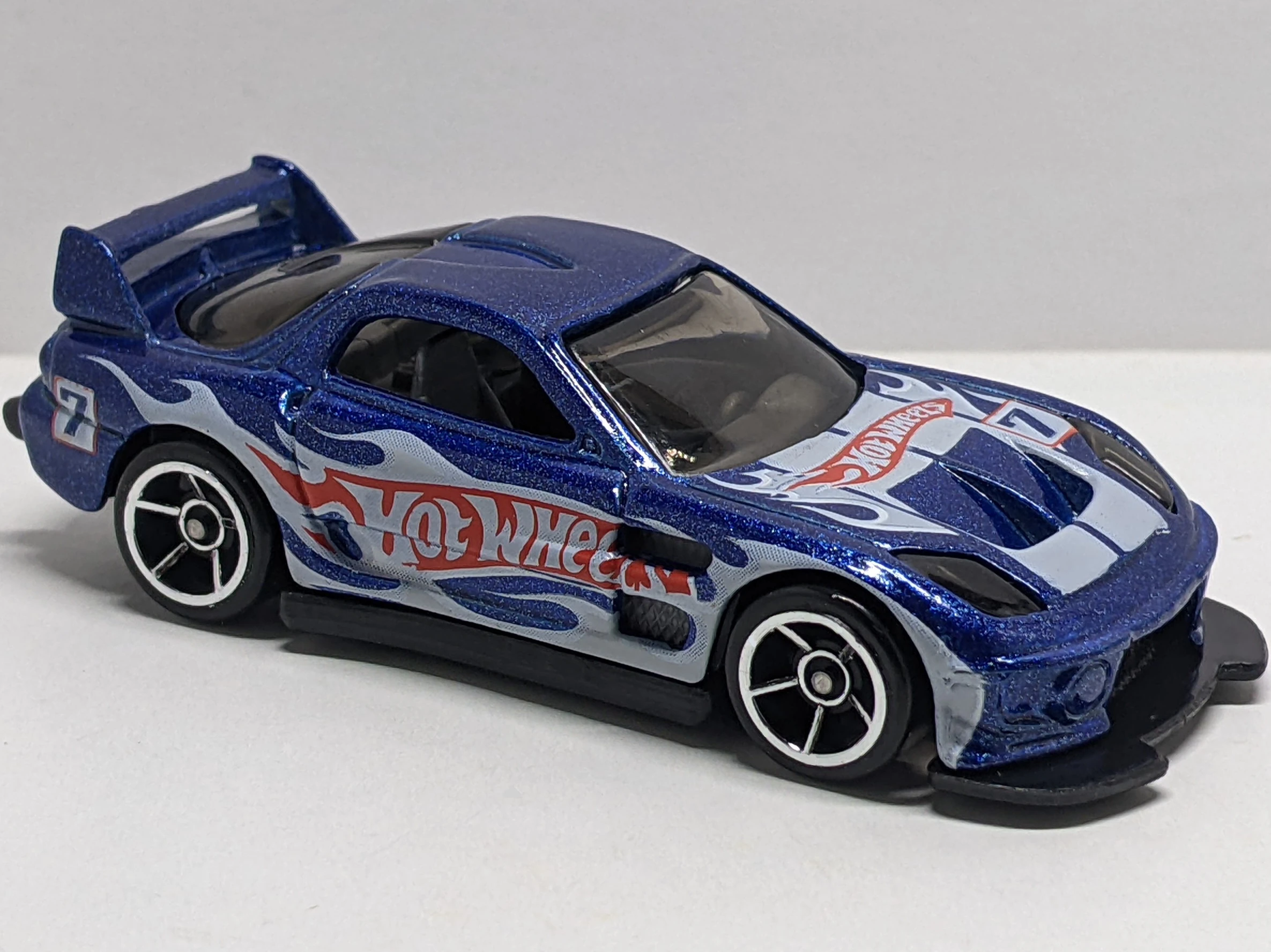 Blue | Hot Wheels Race Team Deco; "7;" Silver flames outlined in White | Black / Plastic |