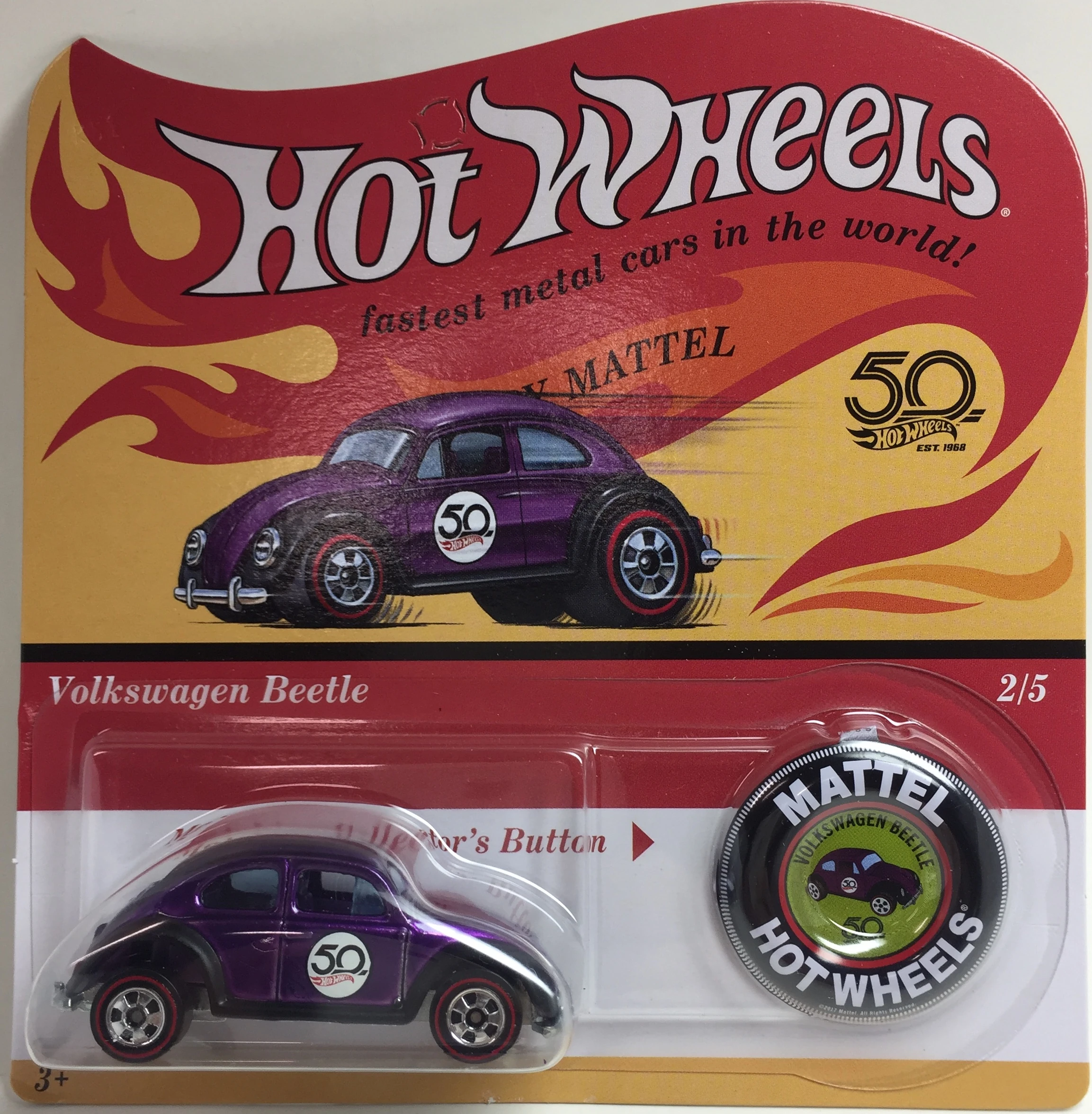 For the 50th Anniversary, Hot Wheels released several special series including the 50th Anniversary Originals Series (sometimes called 'Replica Redlines'). It features five cars in Spectraflame Paint which were packaged on a card representing the original cards from 1968 and also featured a metal Collector's Button. Each car was adorned with the 50th Anniversary logo on the side.