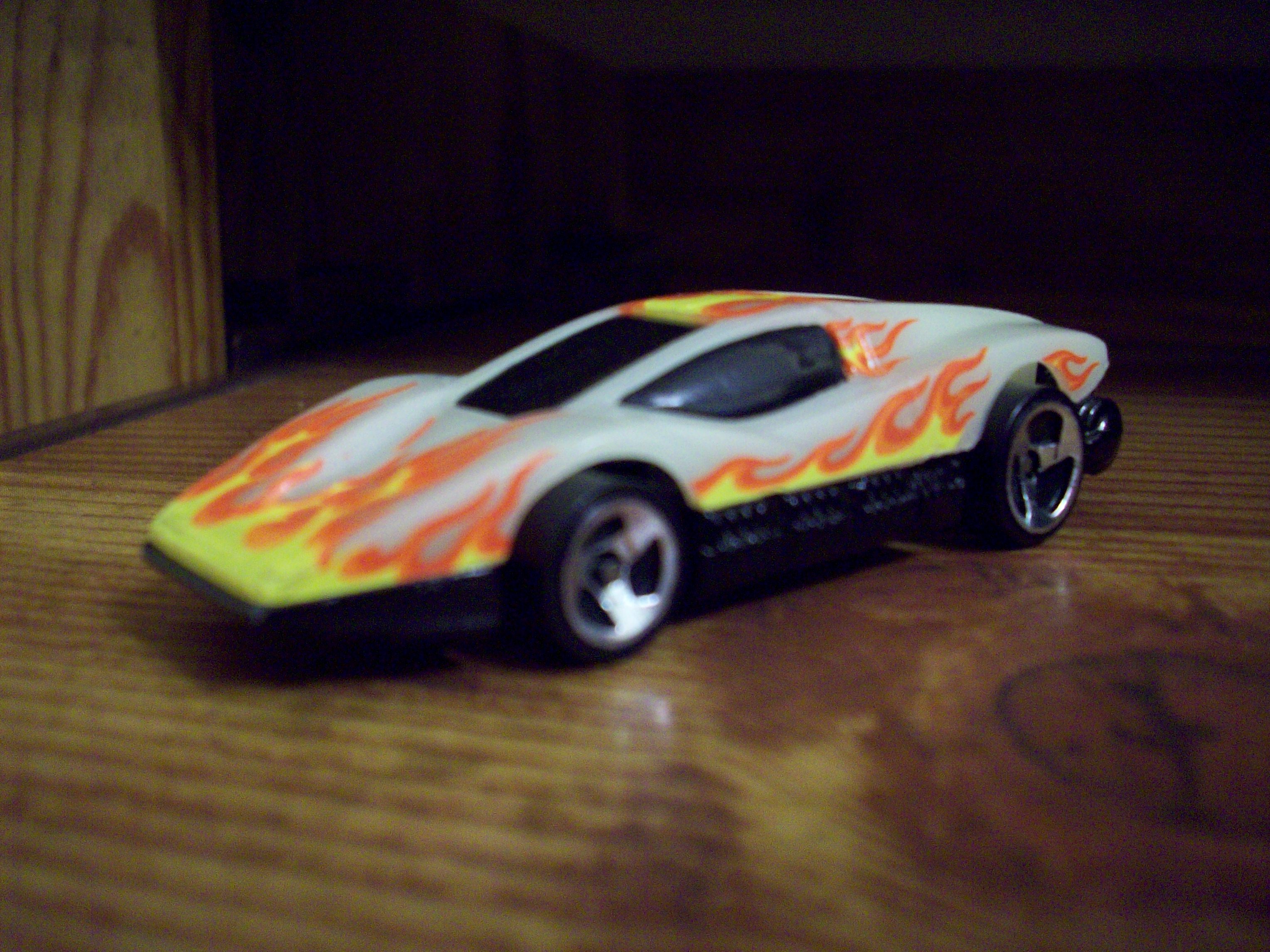 | 1997 | Volcano Blowout Playset | Glow in the dark plastic | Flames, red Hot Wheels logo near back | Black / Metal |