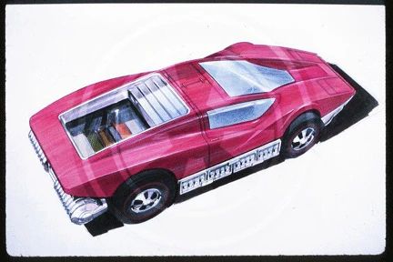 Aeroflash is a depiction of a futuristic all-electric supercar, featuring printed circuitry and large supercapacitors on the rear. It features a wedge design typical of Italian sports cars of the time.
