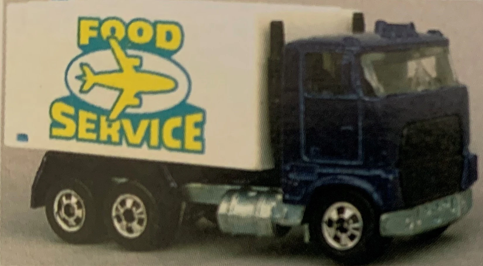 The Airport Food Service was a France-only release. It was a repurposing of the Ford Stake Bed Truck casting with an airport food service container which could lift and lower. This casting was used only once and was then discontinued.