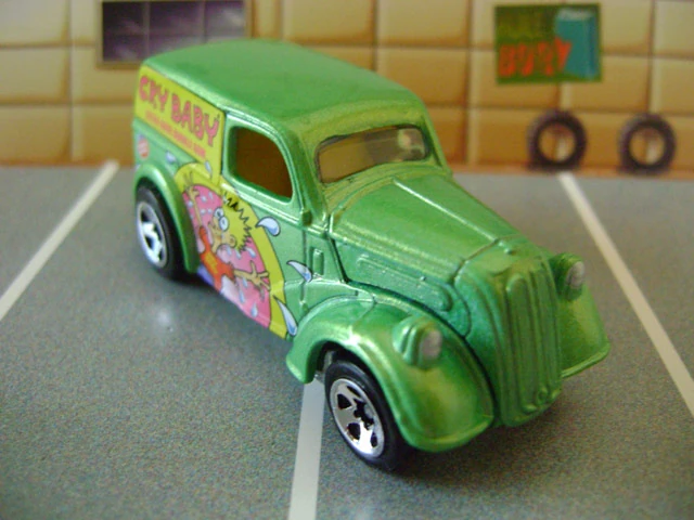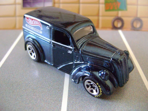 The Anglia Panel Truck is a UK-built commercial panel van from the late 1940s made by Ford of Great Britain for the European and North American Markets. The Hot Wheels casting portrays a E494A model of the Ford Anglia Truck. The E494A was produced from 1949 through until 1953. Although available in North America, the E494A Anglia was not very popular there, much less was the commercial panel version that the Hot Wheels casting replicates. This casting is also left-hand drive, unlike the majority of UK vehicles, suggesting it might be modeled after the North American model.