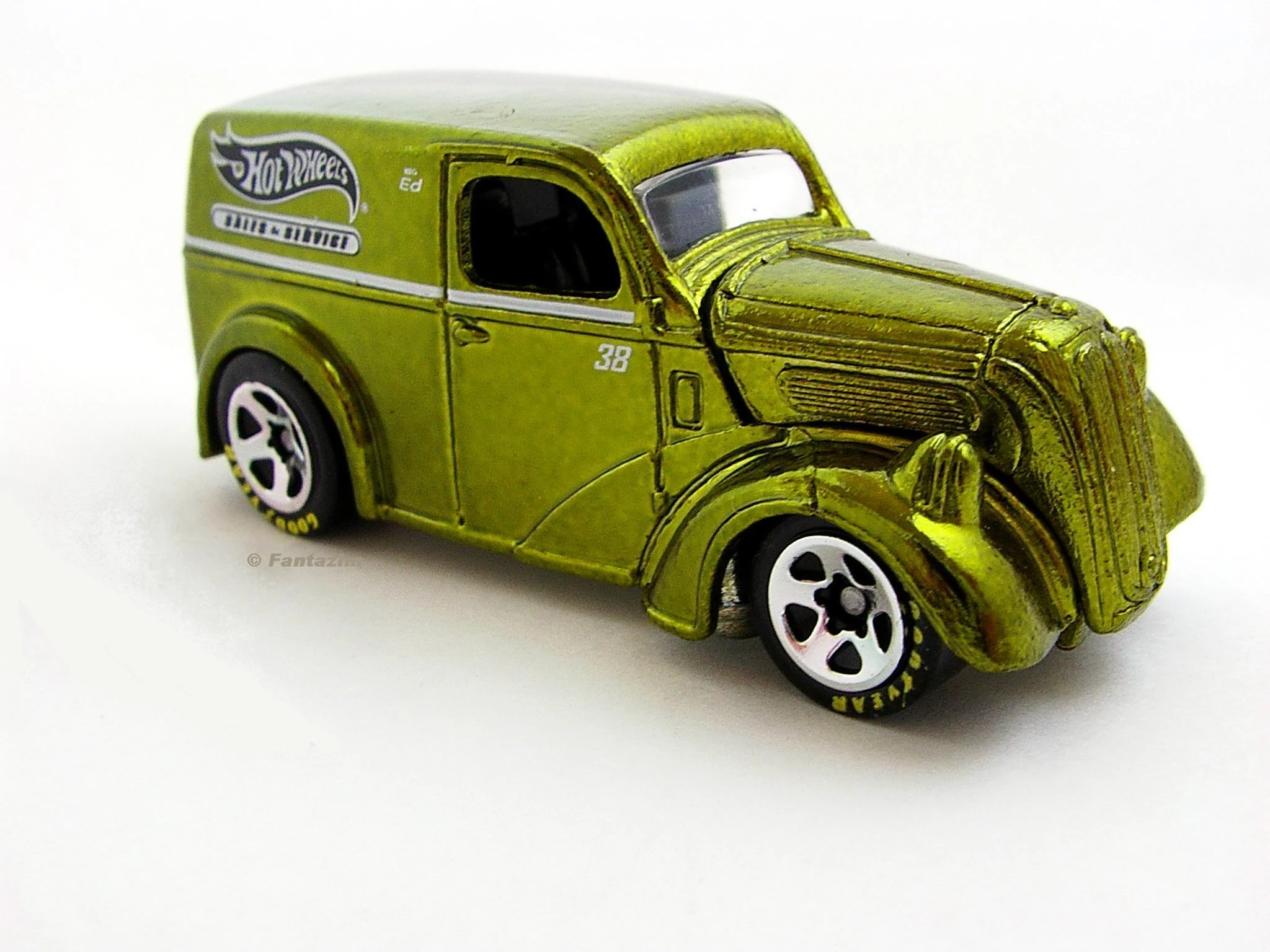 Spectraflame Olive Green | White stripe on side w/ HW logo, 'Sales & Service' and '38' on sides | Unpainted / Metal |
