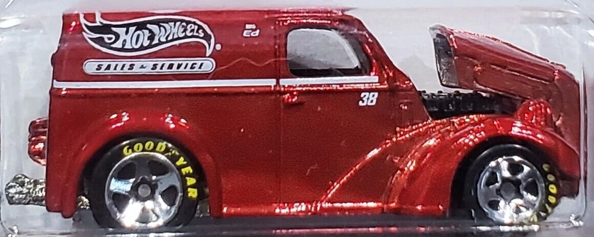 Spectraflame Red | White stripe on side w/ HW logo, 'Sales & Service' and '38' on sides | Unpainted / Metal |