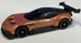 Spectraflame Volcano Red | Detailed headlights and taillights; white, black, & light red stripes on sides & hood; Hot Wheels logo & "HWNFTG" on sides | Black / Metal |