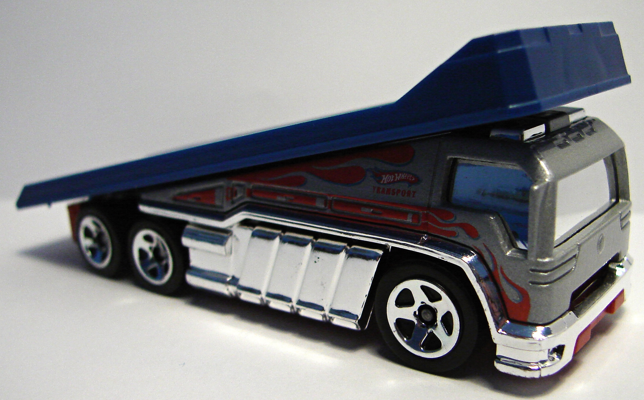 | 2012 | Team Hot Wheels High-Speed Wheel | Red | Black/White Hot Wheels Logos, Yellow Flame over passenger side of cab, "TEAM HOT WHEELS TRANSPORT" | Black / Plastic |