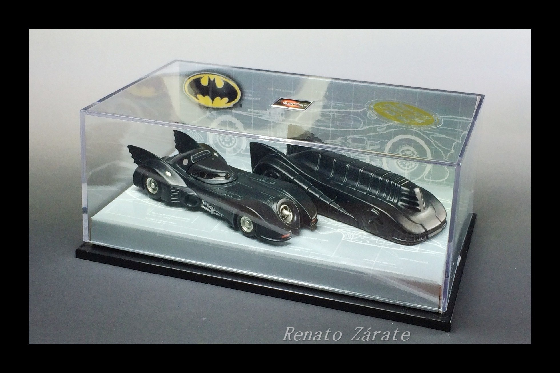 We are proud to present the 1:64 scale Batmobile and the vehicle in its transformed state in this collectible 2-car set.