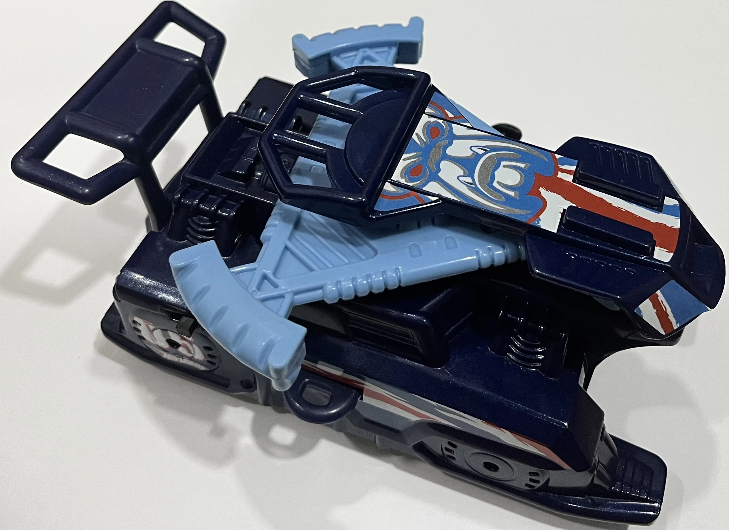 To play, both vehicles are hooked together using their hook mechanisms and are turned on simultaneously using the power switches on the right hand side of their body. Once they are powered, the vehicles will spin around in a counterclockwise fashion as they come closer to each other; the winner is the vehicle with its parts remaining by the end of the battle. The vehicle with no parts left will be bricked with its spoiler kicked downwards, propping the vehicle up. Winning a battle allows a player to attach a "Battle Scar" sticker to their vehicle.