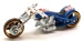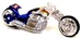 Spectraflame Dark Blue | White seat; white, yellow, & red stripes on sides of gas tank; "Tires that look and feel like the real thing!" & "Real Riders" on top of gas tank; Hot Wheels logo on top of rear fender | Chrome / Metal |