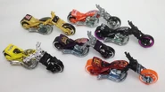 | 2012 | Motor Cycles | Metallic Green | Yellow & Black flames on rear fender & tank, White & Black skull on tank | ZAMAC | Yellow rim Black MC3 | X2086 | Malaysia | Came with removeable rider Base Code(s): |