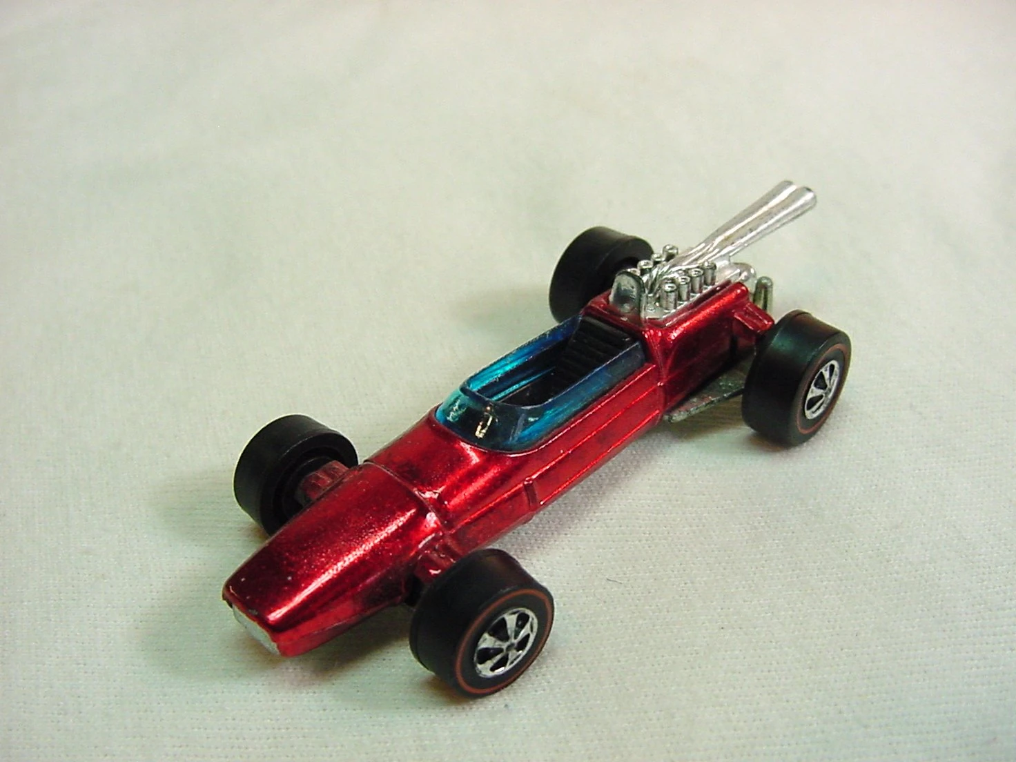 | 1969 | Grand Prix | Spectraflame Red | Hot Wheels Flame right Side on Body | Metal | Blue tint | Black | RL | 6264 | HK |