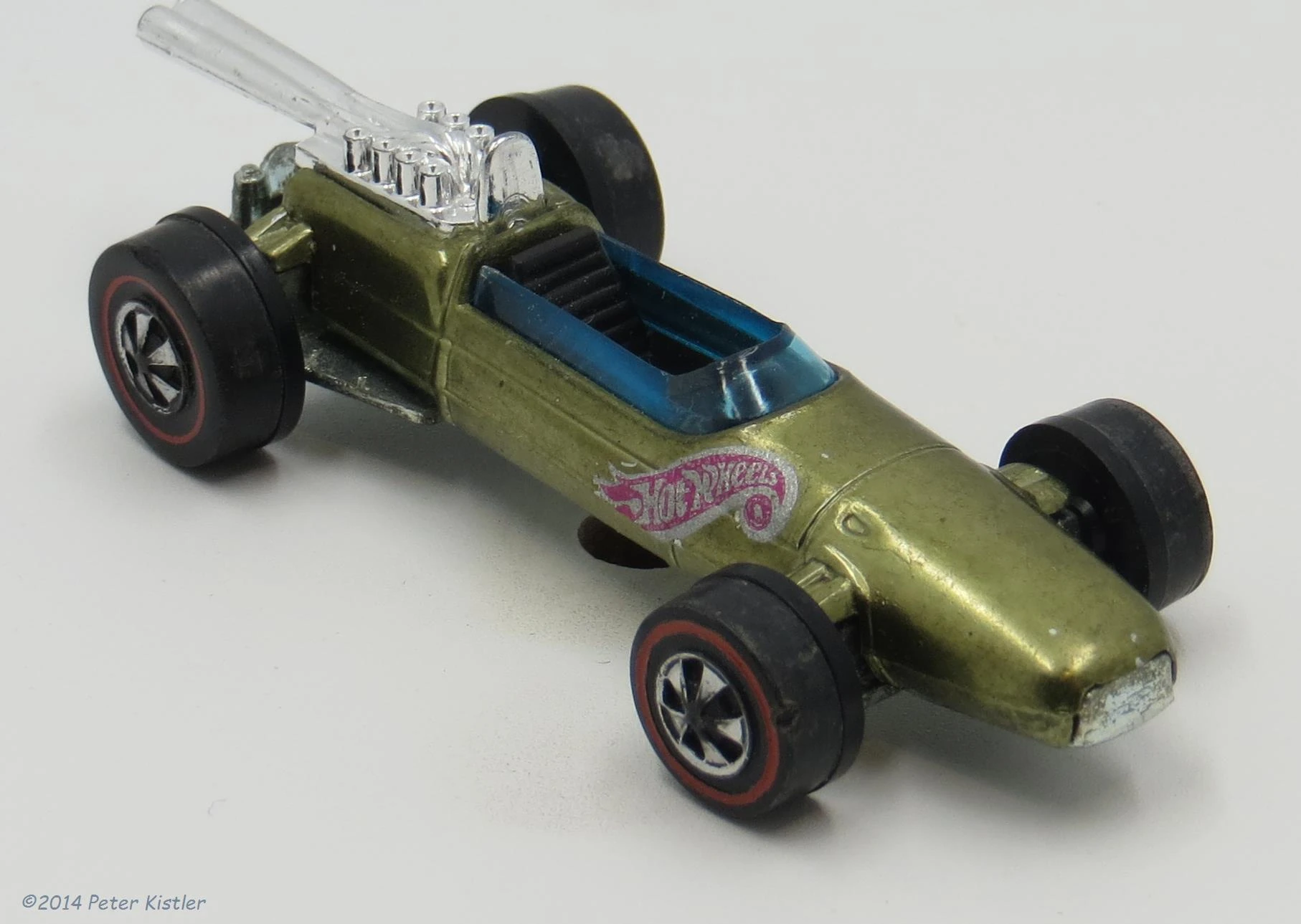 | 1969 | Grand Prix | Spectraflame Olive | Hot Wheels Flame right Side on Body | Metal | Blue tint | Black | RL | 6264 | HK |