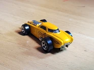 Bullet Nose is a Torpedoes-styled "bullet-nosed" muscle car with a blown engine resembling a Studebaker Commander, a car notable for its bullet-nosed styling. The Torpedo style was a new cartoon style introduced in 2005 and depicts a car in a skinny, torpedo-like shape with outboard wheels. These unique vehicles should perform well on track sets but the exposed wheels make them more susceptible to bending axles. Re-releases of Torpedoes vehicles have been somewhat limited, if existent at all.